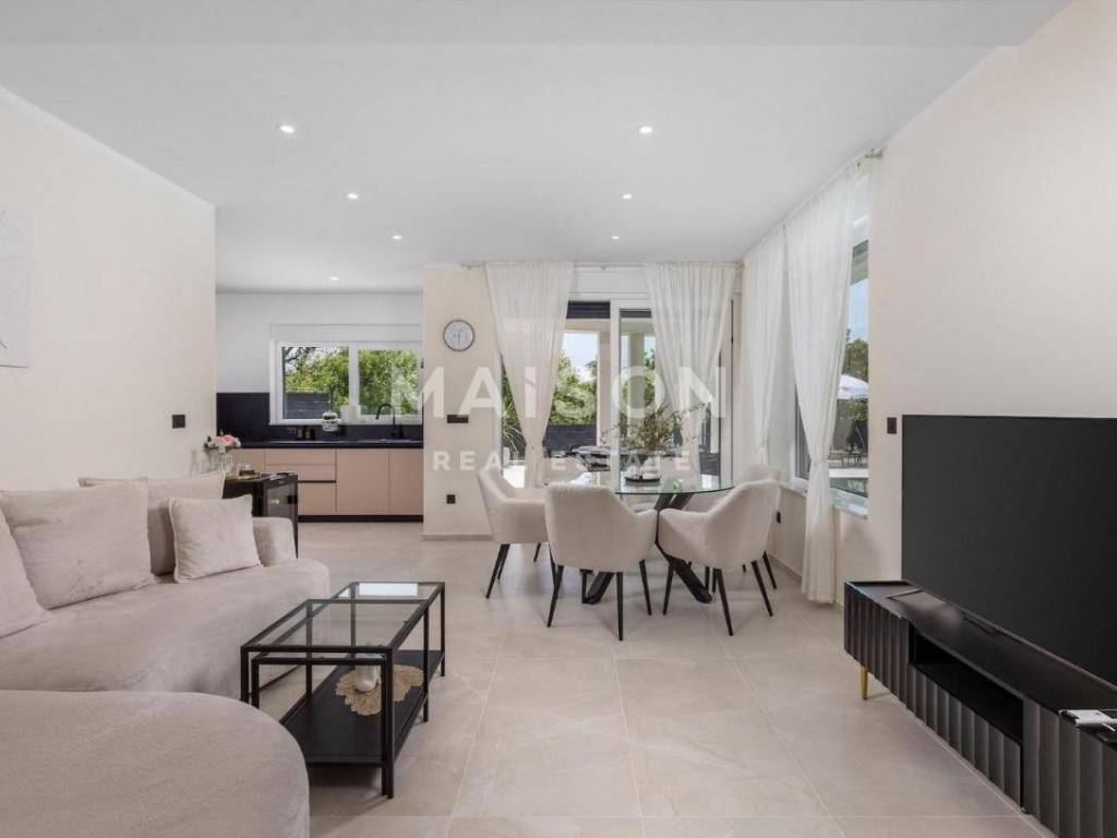 Built with an emphasis on quality and comfort, the villa includes underfloor electric heating, PVC joinery with ALU electric shutters, an alarm system with video surveillance, air conditioning in all rooms, and a fully equipped kitchen with appliances. The villa is sold fully furnished and ready for immediate occupancy.