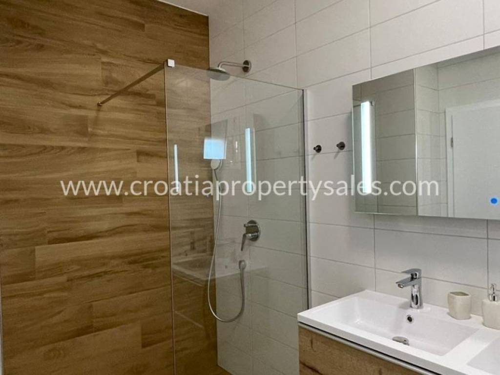 In a town not far from Šibenik this beautiful contemporary villa is for sale.Built in 2022 it makes an ideal investment for private or tourism purposes. The ground floor consists of an open-plan living and dining area with a kitchen, guest wc and large glass doors opening onto the terrace with a  25 m2 saltwater swimming pool. Internal stairs lead to the first floor consisting of 4 bedrooms, 2 of which are en-suite with large balconies and sea views, and an additional bathroom. Additional features include a BBQ and outdoor dining area, parking for 3 cars.