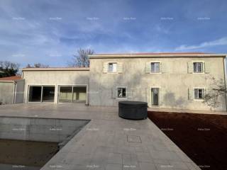 The detached villa, surrounded by a garden of 980 m2, is a true haven of peace and quiet, perfect for those looking for seclusion and privacy.The spacious and elegantly designed interior covers 262 m2 and consists of 4 bedrooms, each with a bathroom, hallway, pantry, living room and kitchen with dining area.The living room includes a fireplace in the center and is the perfect place to relax.The villa"s outdoor spaces are equally impressive, with several covered and uncovered terraces providing ample space for alfresco dining, lounging and soaking up the sun.The central part of the outdoor space is intended for a private swimming pool, size 8 x 5 meters, and for an additional pleasant experience there will be a warm steam sauna.The garden is carefully maintained, with many Mediterranean plants and trees.Heating is provided under the floor with a heat pump, and cooling is provided by air conditioners.The villa is located near Grožnjan and far from several well-groomed pebble beaches in Kanegra (10 minutes away). With an excellent location and luxurious contents, this villa is the perfect choice for you.The building was built, a 10 cm thick facade was installed, plastered inside, all electricity, water, heating and video surveillance installations were installed.The environment is currently being cleaned up.The price of the villa includes all finishing surfaces - ceramics, wall painting, room doors, heat pump for heating sanitary water and floor heating, air conditioning in every room and living room, swimming pool with equipment, indoor sauna and outdoor hydromassage tub.This station has 5 parking spaces, covered and uncovered.It also has a storage shed and a garden house.For more information, please contact:Azra+385 91 6115706+385 98 420 885azra@almadominvest.com