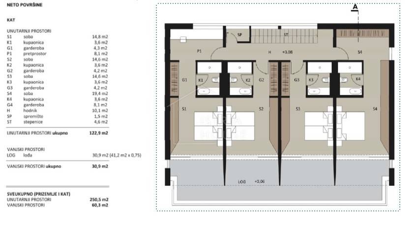 Projektom je planirana moderna građevina od 250 m2 sa 4 spavaće sobe iz kojih bi se pružao pogled na more.