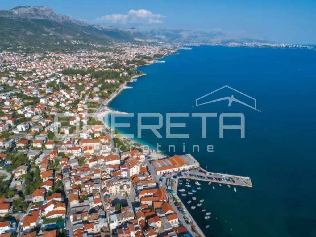 Parcela površine 633 m2 nalazi se na povišenom terenu iznad Kaštelanskog zaljeva, s južnom orijentacijom i otvorenim pogledom prema moru. Ključna prednost je to što se taj pogled ne može zatvoriti naknadnom gradnjom ispred, jer se parcela nalazi iznad naselja, na povišenom položaju, te gleda preko zaljeva.