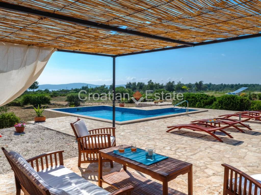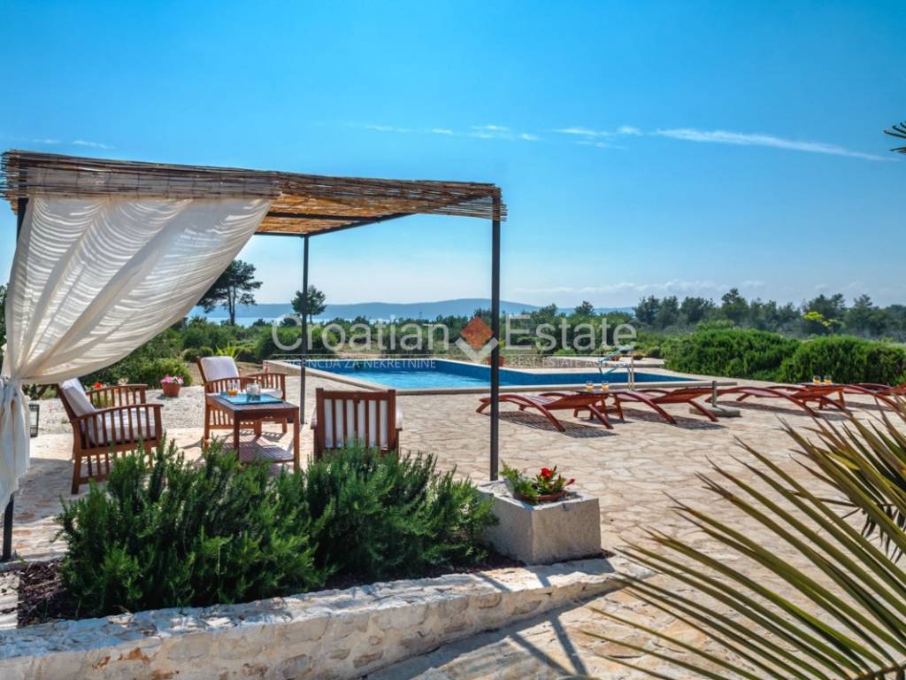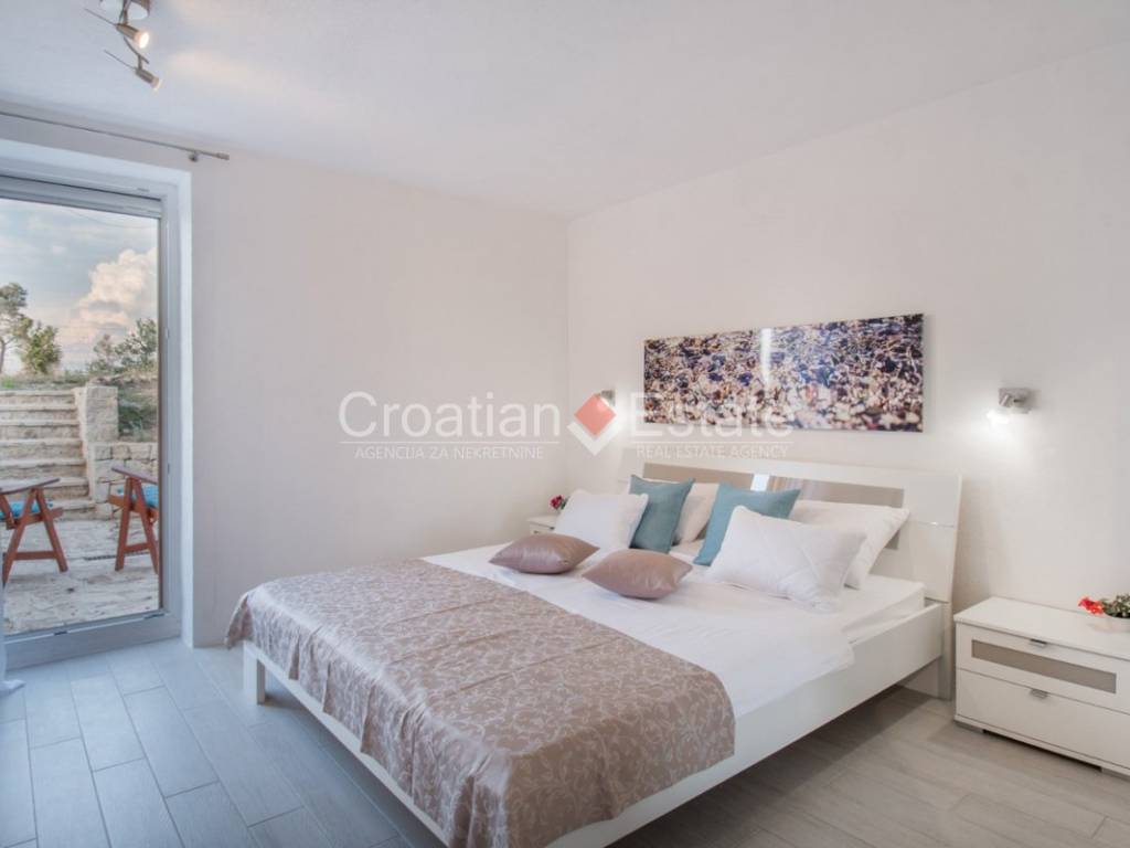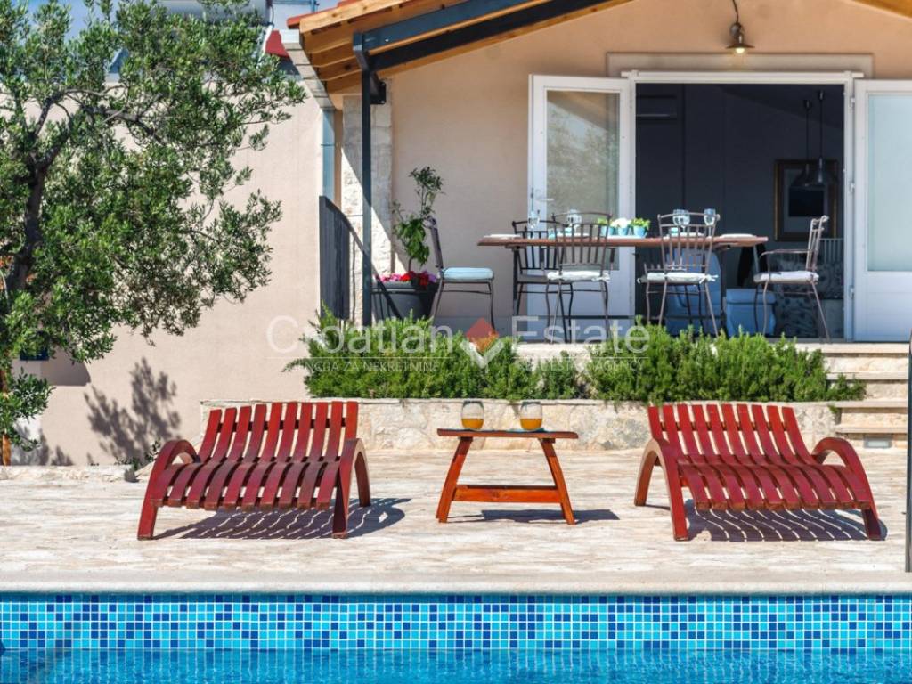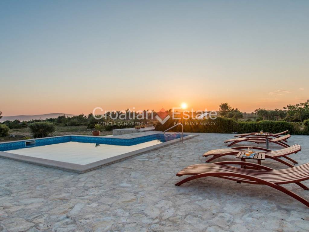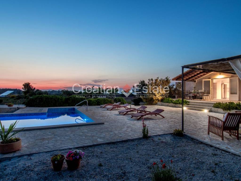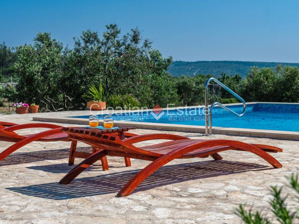 The standout feature at the centre of the plot is a spacious terrace boasting a 36m2 pool. Next to the pool is a sunbathing area and a beautifully landscaped garden with typical Dalmatian plants, providing plenty of space for play, relaxation, gardening or family gatherings around a barbecue, away from prying eyes and noise.