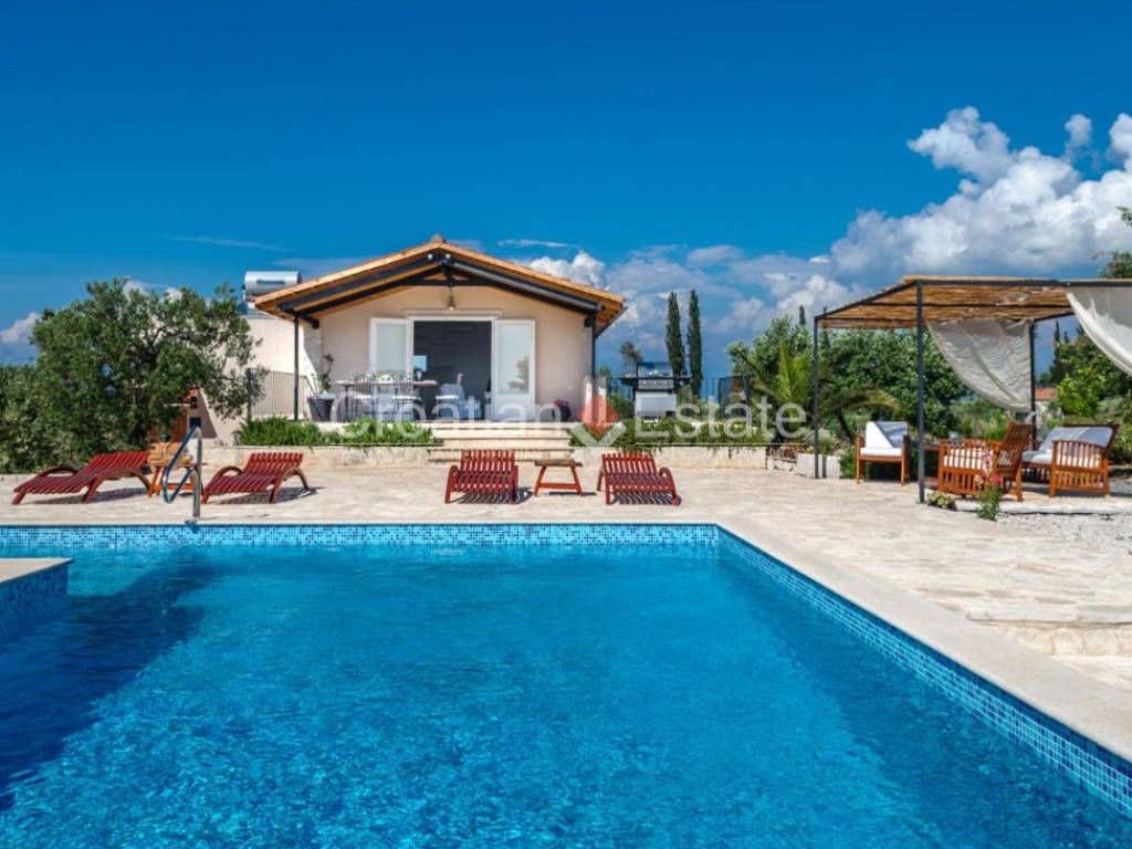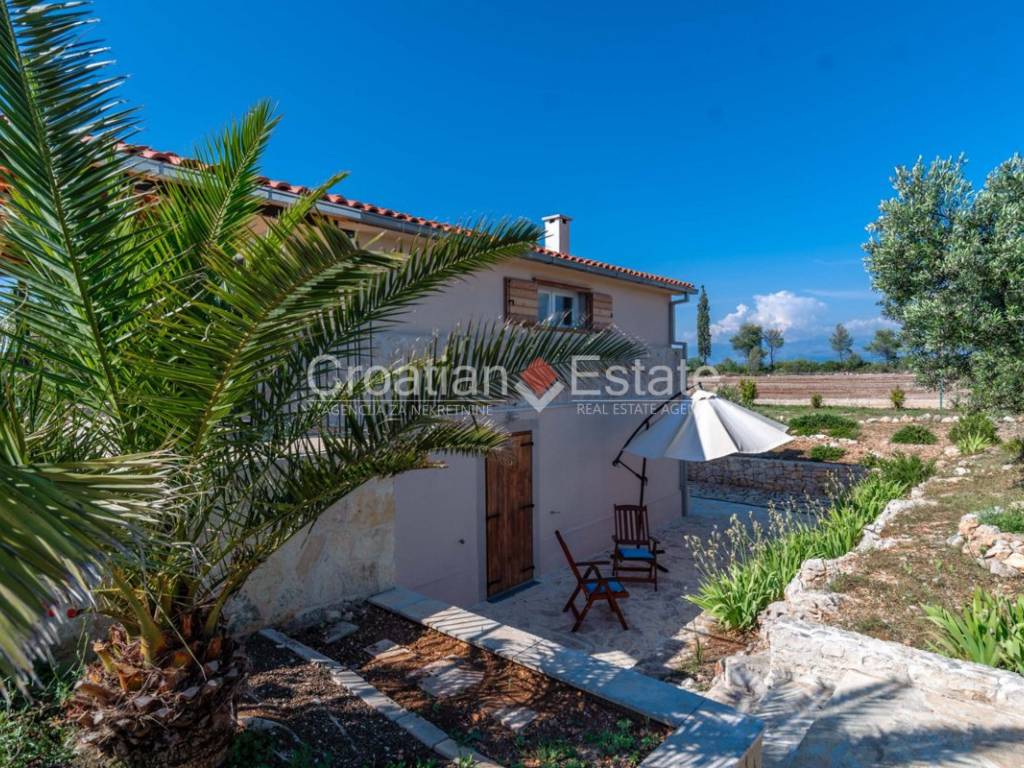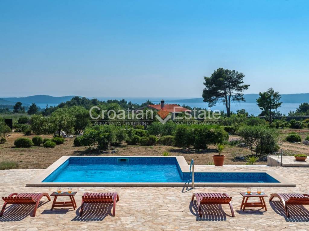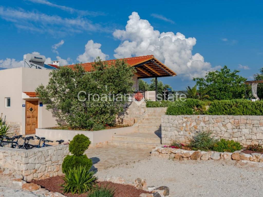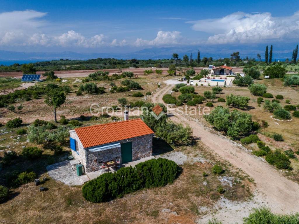 Exclusive sale! Nestled in the heart of nature, surrounded by olive groves and enclosed by traditional dry stone walls, is a spacious estate featuring a villa and an additional smaller house. It is 1km away from the sea, and about 2km from the town centre, making it just a few minutes’ drive from all necessary amenities. From every corner of the estate, breathtaking open views of the sea and nearby islands can be enjoyed. A special pleasure during summer evenings is watching the stunning sunset.If you’re searching for a place to finally slow down, breathe deeply, and live in harmony with yourself and nature – this villa is more than a home; it’s a fresh start.