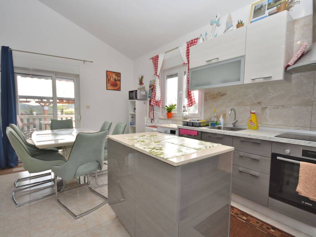 Putičanje - an estate with two houses is for sale in a quiet location. The houses are situated on a plot of 982m2, fully enclosed by a wall and metal fences, ensuring peace and complete privacy. They are fully equipped, air-conditioned (bedrooms and living room), and modernly furnished. They can be used for tourist rental purposes or for personal use. The yard is landscaped, paved, and includes three covered parking spaces, a pool measuring 9m*3m, a garden cultivated with Mediterranean herbs, a children's playground, a sports playground....