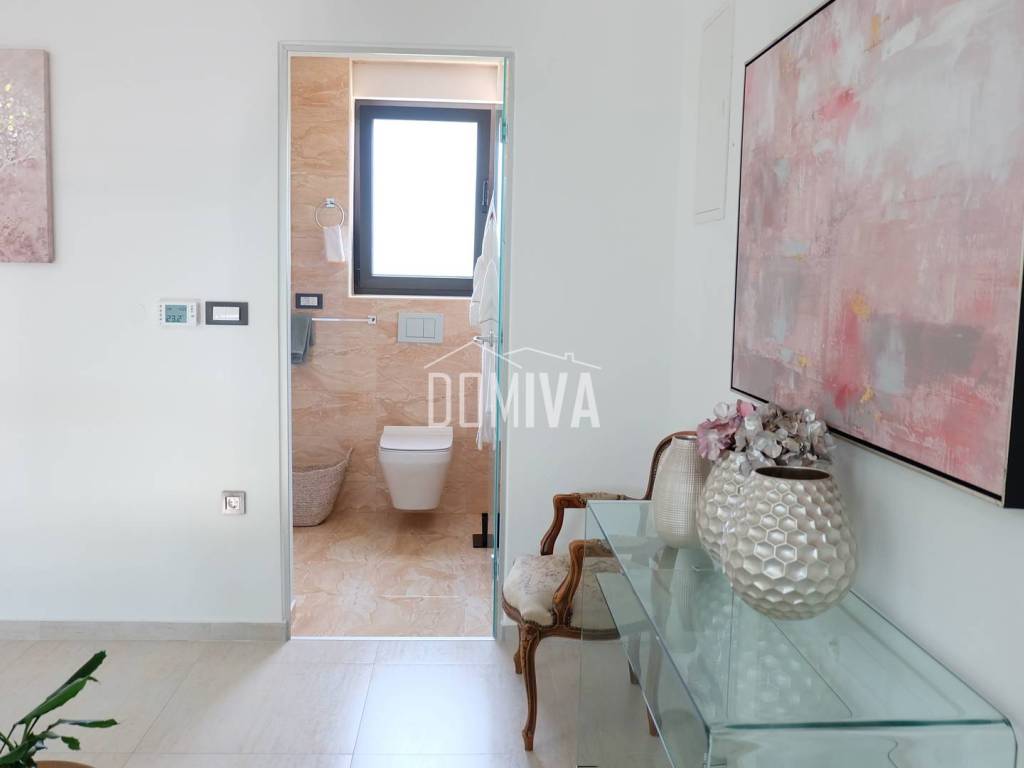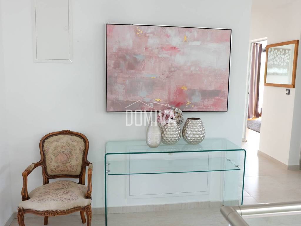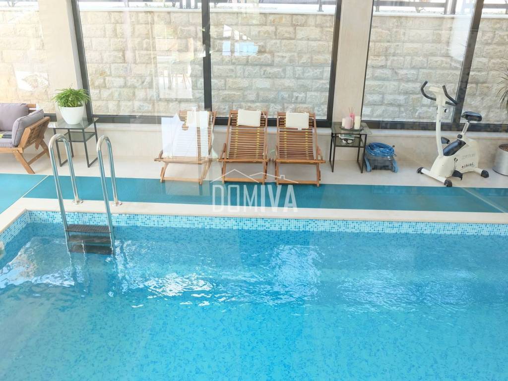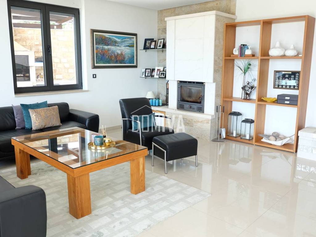 Ova kuća s četiri spavaće sobe idealna je za obitelj ili investitore koji traže prostranu i luksuznu nekretninu na atraktivnoj lokaciji. Kuća se ističe središnjim grijanjem, što osigurava ugodnu temperaturu tijekom cijele godine, dok klima uređaj dodatno pridonosi udobnosti u toplijim mjesecima. Za ljubitelje opuštanja i uživanja na otvorenom, tu je i bazen s prekrasnim pogledom na more, savršen za uživanje u sunčanim danima.