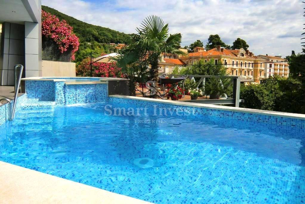 OPATIJA - CENTER, for sale is an exclusive villa with a swimming pool, gym, sauna and a beautiful view of the sea! This villa, a masterpiece of modern architectural design, offers luxurious living space and a spectacular view of the sea, and is situated only 100 m from the sea in the strict center of Opatija - the pearl of the Adriatic, which attracts those who seek not only the beauty of the coast but also a luxurious lifestyle. MAIN FEATURES • villa area 756 m2 • land area 722 m2 • 3 residential units • 6 bedrooms, 4 bathrooms, 2 toilets • gym, sauna, tavern with fireplace In the basement, an extremely spacious tavern with a fireplace, a sauna for relaxation and a well-equipped gym, a bathroom and a heating engine room await you. There is also a spacious garage that can accommodate 2-3 cars, and another 4 parking spaces are available in the yard of the villa. The residential part of the villa is divided into three completely separate and independent residential units, providing privacy and flexibility. On the ground floor there are two separate apartments, each with its own entrance: • apartment of 50 m2, consisting of a large living room with kitchen and dining area, bedroom and bathroom. • apartment of 65 m2, consisting of a large living room with kitchen and dining area, 2 bedrooms and a bathroom. The third apartment is a luxurious three-level apartment located on the first and second floors, and connected to the basement. On the lower level there is a spacious living room, kitchen and dining room, two bedrooms with a shared bathroom, an additional toilet and a corridor. The living room and each bedroom have access to their own terraces. The upper floor hides a master bedroom with a dressing room, a spacious bathroom, a Jacuzzi and a wonderful terrace of 90 m2 with a panoramic view of the sea. The quality of construction and luxury equipment of this villa are truly outstanding: • heating and cooling on a DAIKIN heat pump in a combination of floor heating and ceiling heating and cooling • all rooms are equipped with digital thermostats for separate temperature management • external carpentry SCHUCO with ROLTEC remote-controlled aluminum blinds • brushed oak room doors with magnetic closure • bathroom equipment VILLEROY & BOCH, GEBERIT, VIEGA, PAFFONI • every opening in the villa covered by an anti-burglary system and video surveillance The villa is surrounded by a beautiful garden enriched with tall palm trees and Mediterranean vegetation. Here there is a swimming pool and a beautiful terrace of 60 m2, perfect for relaxing or spending time with family and friends. This property offers an extremely rare opportunity to live luxuriously in the very center of Opatija, only 100 meters from the sea and beautiful beaches. REAL ESTATE WORTH ATTENTION! For more information and a viewing appointment call: +385/99/320-0008 ID CODE: 2250 Agencija Opatija Ovlašteni posrednik Mob: +385/99/320-0008 E-mail: office@smart-invest.hr www.smart-invest.hr
