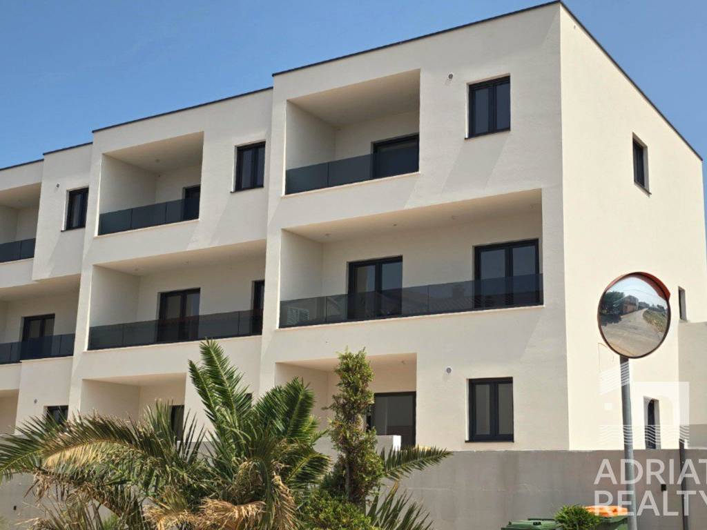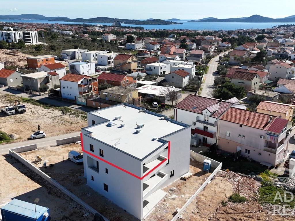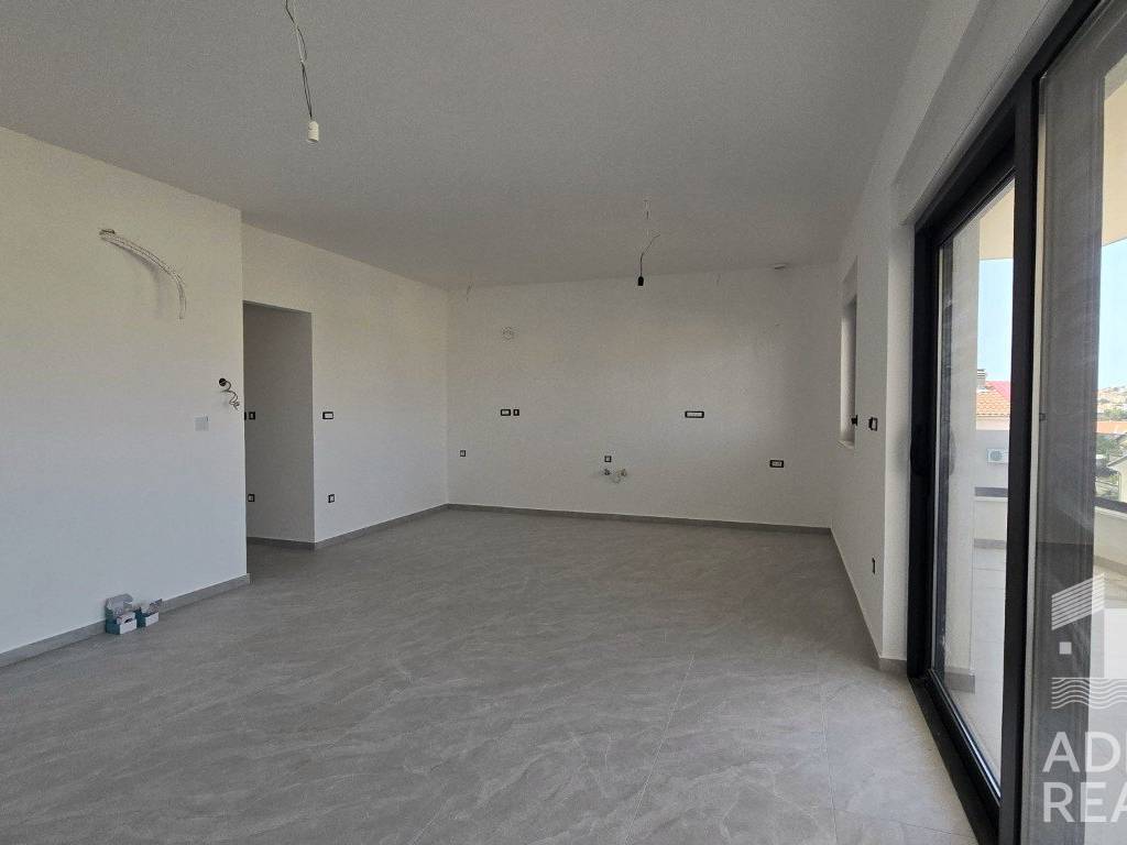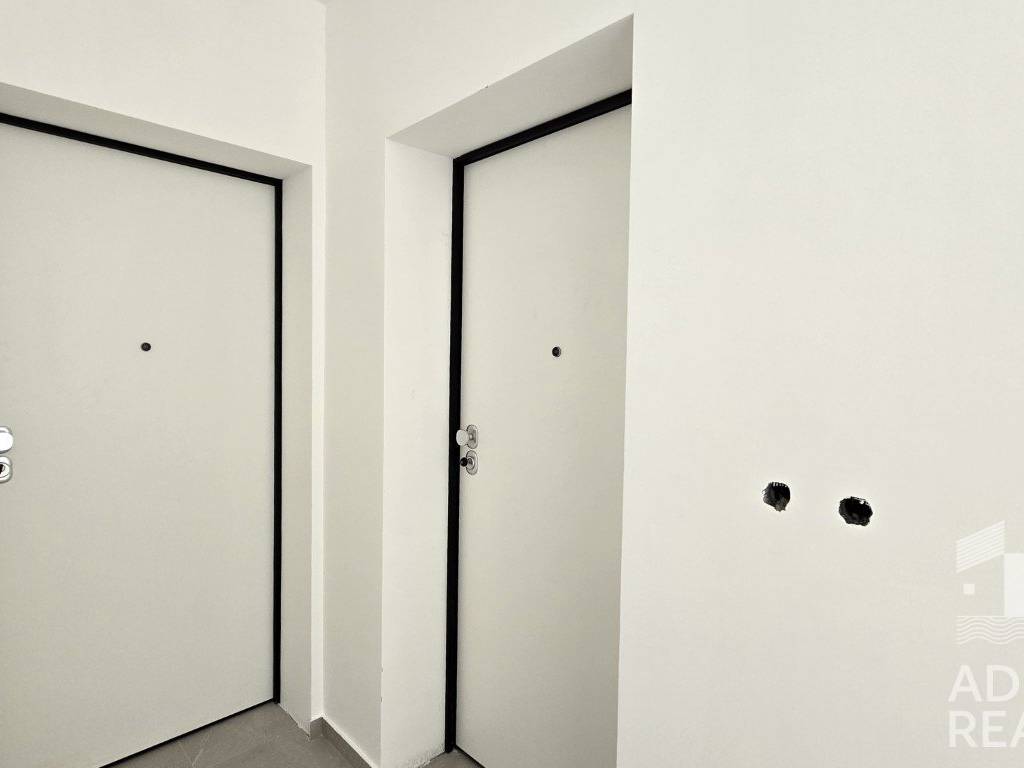 A two-bedroom apartment is for sale, located on the second floor of a modern building under construction with a total of eight residential units. The building is situated in a quiet location, and the completion of works and move-in is planned for the summer of 2025.