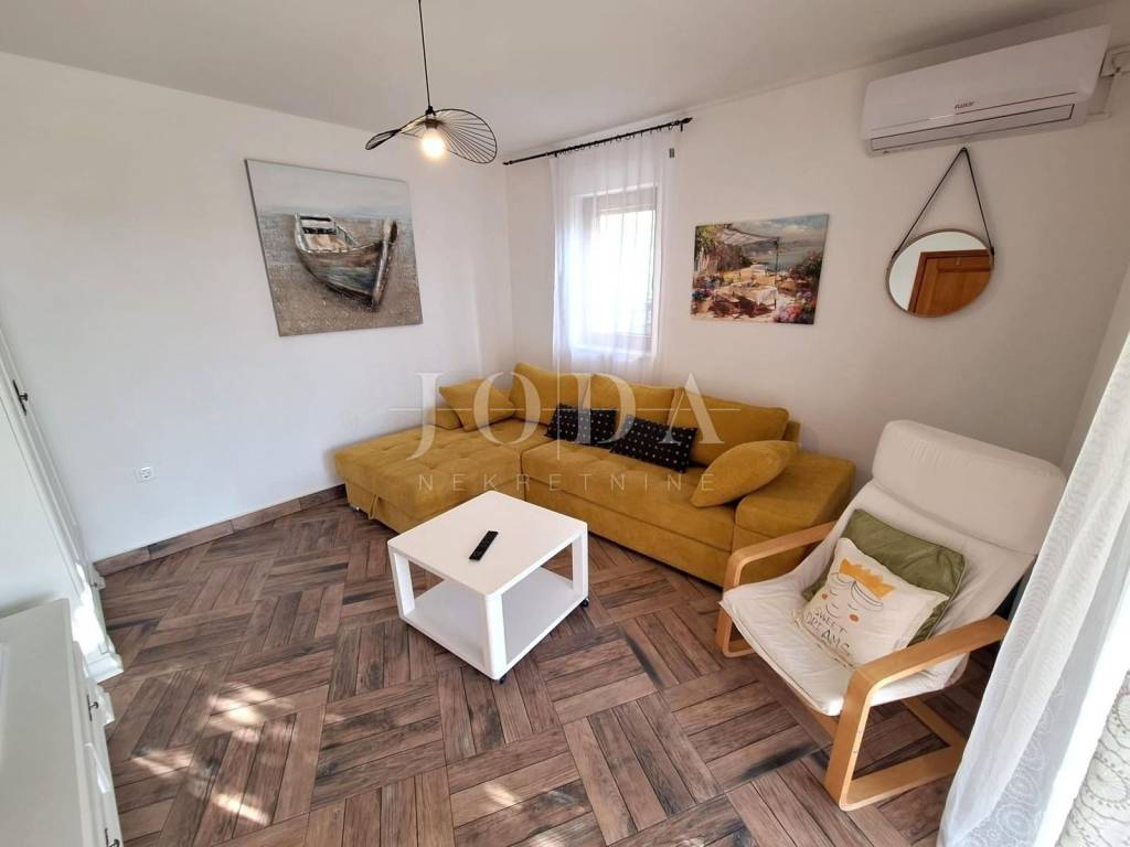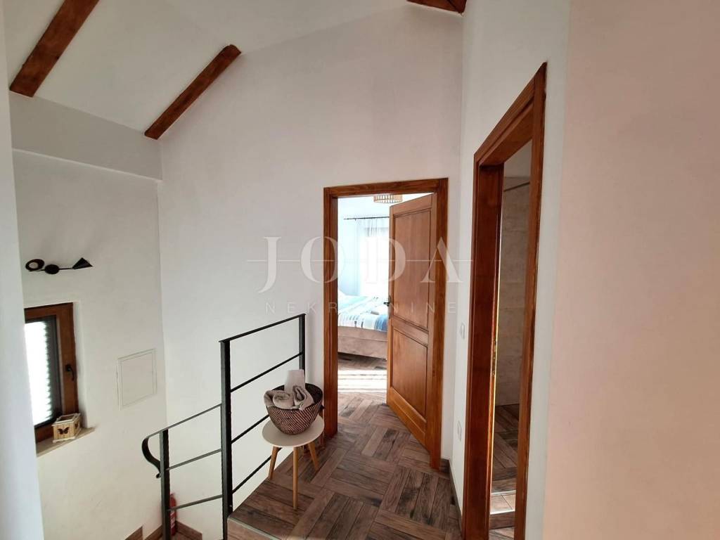 Detached Mediterranean-Style House in a Peaceful Location Near Malinska This 130 m² detached house is spread over two levels: a ground floor and an upper floor. The ground floor features an entrance hall, a bathroom, living room and a kitchen and dining space. An internal staircase leads to the upper floor, which comprises two bedrooms and two bathrooms. Both bedrooms have access to a terrace offering views of the surrounding nature and a partial sea view. The landscaped garden includes two parking spaces, a storage room, a summer kitchen with a barbecue and a covered terrace, a swimming pool, and a sunbathing area. The house is being sold fully furnished and equipped. This property benefits from a well-established tourist rental business. Viewings are only possible during guest changeover times. ID CODE: EI-6987 Josip Šikić, mag.oec Agent s licencom Mob: +385 91 890 4694 Tel: +385 51 403 771 E-mail: info@joda-nekretnine.hr www.joda-nekretnine.hr