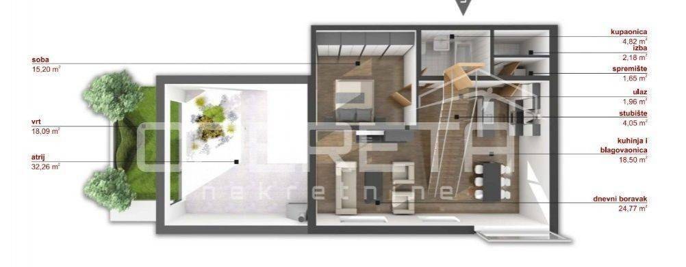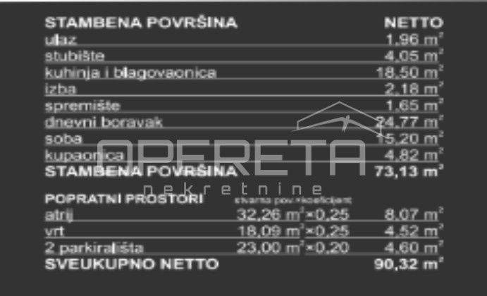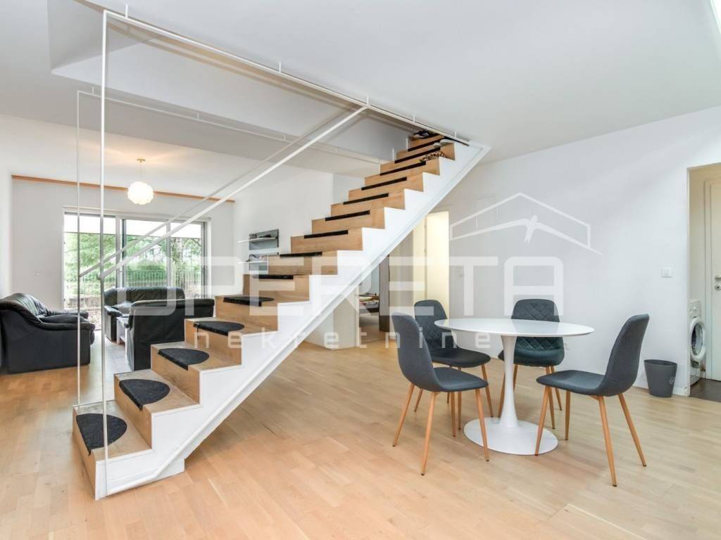 PRODAJA, STAN, ZAGREB, MARKUŠEVEC, 90m2, stan 2-soban moderan kao nov, ul. Štefanovec. Stan ima zatvorenog prostora 73 m2 a sastoji se od prostranog dnevnog boravka, kuhinje i blagovaonice i stubišta, soba, izba, kupaonica s wc-om, spremište . U ukupnu navedenu kvadraturu stana su po koefic. obračunati atrij, vrt i 2 vanjska parkirna mjesta. OPREMA: aluminij stolarija sa IZO staklom, alu rolete sa električnim podizačima, inox ograde, te parket i pločice prve klase. Stan je dosta moderan na jako mirnoj lokaciji, potok uz sami vrt i atrij idealan za uživanje u jutarnjoj kavi, roštilju ili pogledu na zelenilo daju dojam života u kući. Idealno za Kupca koji želi osjećaj baš doma, mira i povezanosti sa prirodom. Svi sadržaji na 5 min. pješice. PREPORUČUJEMO!