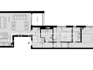 Sastoji od ulaznog prostora s garderobom, dnevnog boravka s kuhinjom i blagovaonicom, loggie, dvije spavaće sobe i dvije kupaonice.