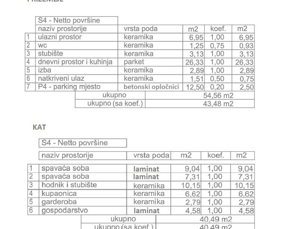 PROSTORIJE STANA S4: vidjeti priložene tlocrte i popis površina