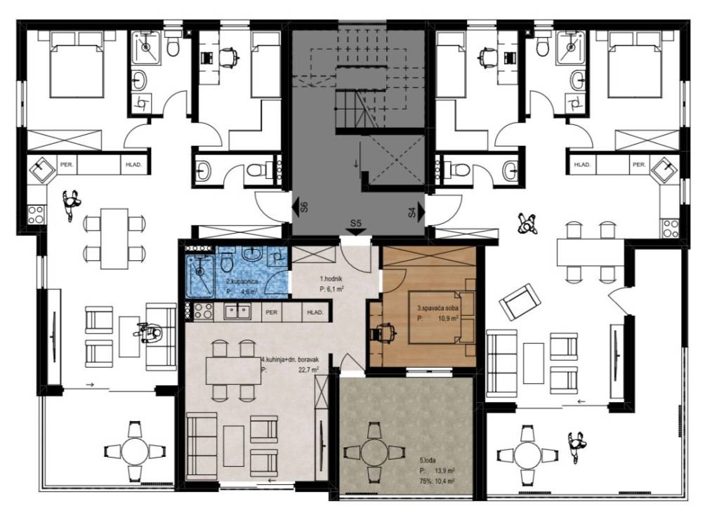 Svi ugrađeni materijali, kao i završne obloge, pažljivo su odabrani kako bi zadovoljili najviše estetske i funkcionalne standarde suvremenog stanovanja.