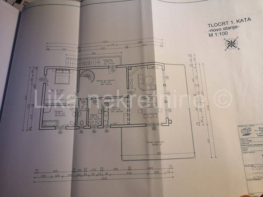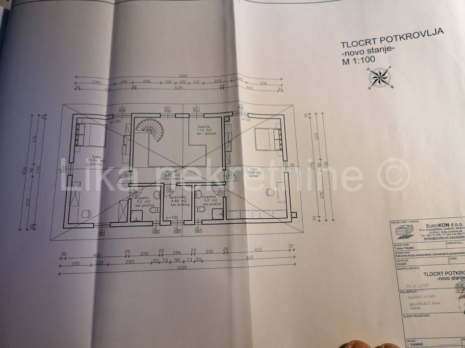 GOSPIĆ - Davida Starčevića ulica, samostojeća stambena zgrada s 4 stana, svaki cca 90 m2, roh bau, kompletna infrastruktura, struja trogazna, predviđeno centralno na lož ulje, zgrada građena - adaptirana 2014/2015, sastojio se od prizemlja, kat, stanovi su 3 sobni, kupatilo, wc, kuhinja, dnevni boravak, svaki stan ima balkon, zgrada se nalazi u ulici Davida Starčevića 7, prema Pazariškoj ulici. Zgrada nije nabačena ni izvana ni iznutra, voda do zgrade, večičina zgrade 19x8m. Uredno vlasništvo 1/1, bez tereta, površina okućnice 4002 m2. Građevinska dozvola iz 1973 godine, i idejno rješenje iz 2007 godine, katastarski ucrtano.