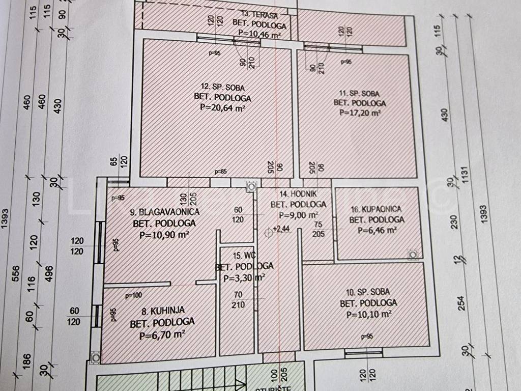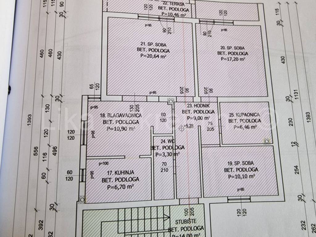 APARTMAN - stan ( E-2) - na prvom katu u naravi hodnik, kuhinja, blagovaonica, kupaonica, WC, tri spavaće sobe i natkrivena terasa ukupne površine netto 89,53 m2