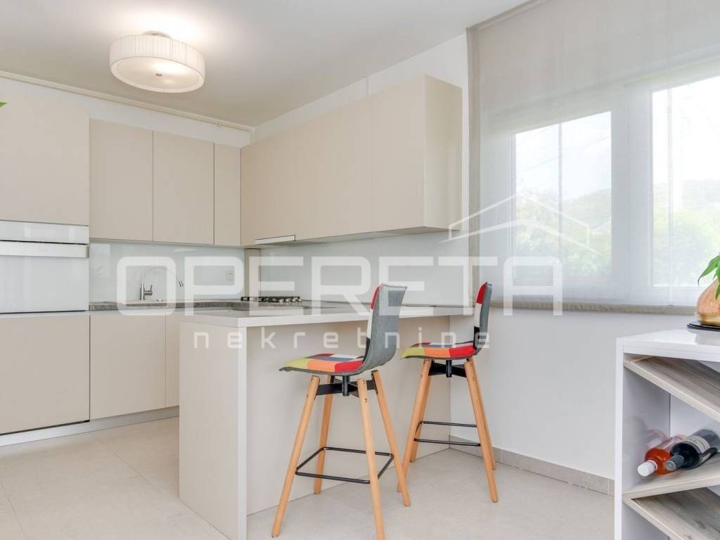 Fully modernly furnished, bright, surrounded by greenery. It is equipped with surveillance cameras and an alarm, and parking is under the ramp.