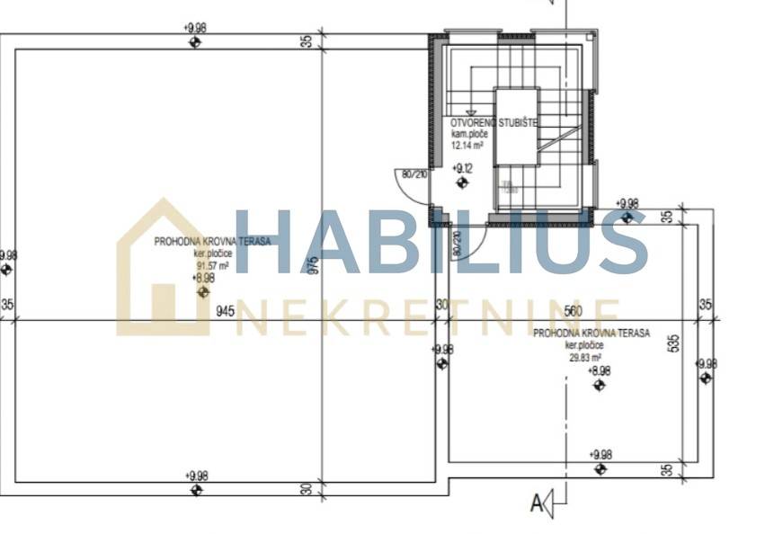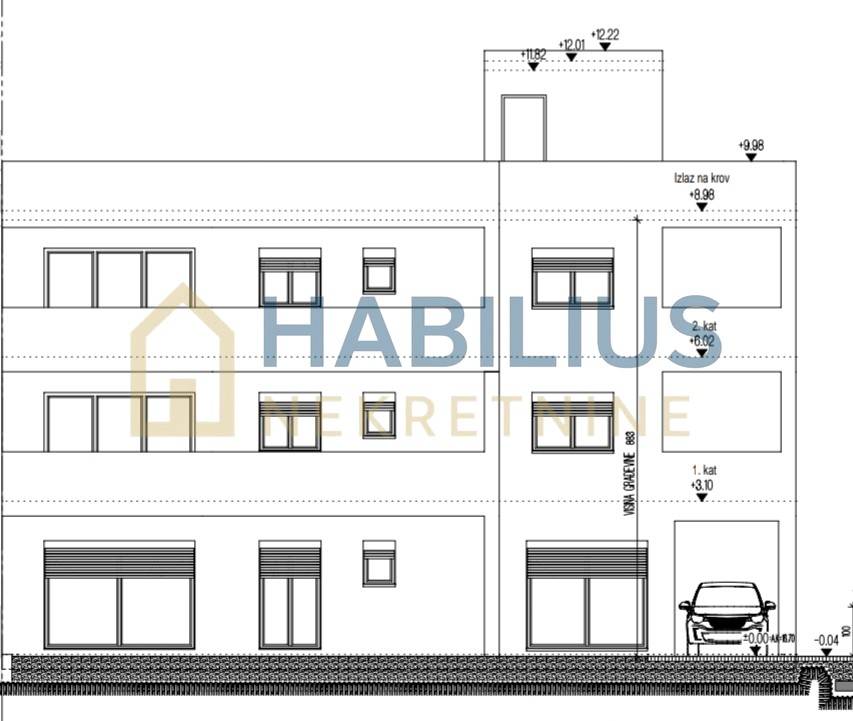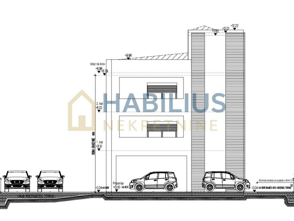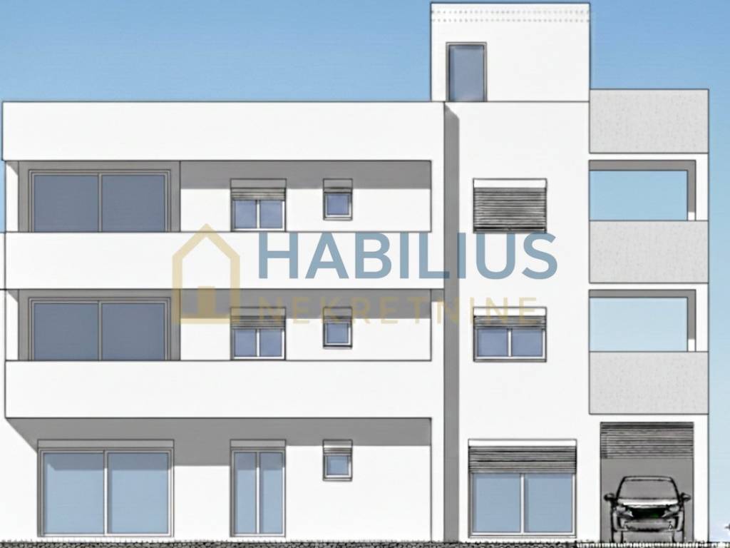 Prodaje se prostrani stan od 135 m2 (podne površine 240 m2), koji je u naravi podijeljen u dva (jednosobni komforni i dvosobni komforni), svaki sa svojim vlastitim ulazom. Smješten je na 2. katu stambene zgrade koja ima ukupno tri stana. Zgrada je u bloku sa susjednom kućom, i nalazi se između stare (udaljenost 130 m) i nove ceste (udaljenost 360 m). Udaljenost od mora je 400 m. U blizini svih sadržaja potrebnih za ugodan život – ambulanta, javni prijevoz, trgovina, vrtić, škola, plaža...te je idealan za obitelj, ali i kao investicija.