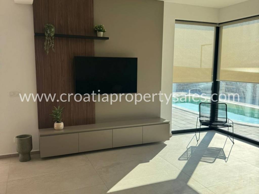 New, exclusive property in our offer.Brand new, built in 2024, fully and modernly equipped villa with a swimming pool on the island of Pag.With a land area of 530 m2, this property consists of a living room, kitchen, dining room and bathroom with sauna on the ground floor, and four bedrooms and two bathrooms on the first floor.There is also an authentic fireplace, a semi-covered outdoor area with a table, chairs and armchairs for sitting and enjoying, a sundeck with deck chairs and an uncovered heated pool.Located 1.5 km from the sea and all necessary amenities, this villa offers great comfort and the opportunity to enjoy and relax.With a beautiful panoramic view, and with a pool and indoor sauna, it provides everything you need.It can be a nice family property since there are not many other properties nearby, which provides more privacy, but it is also a top investment for rental.