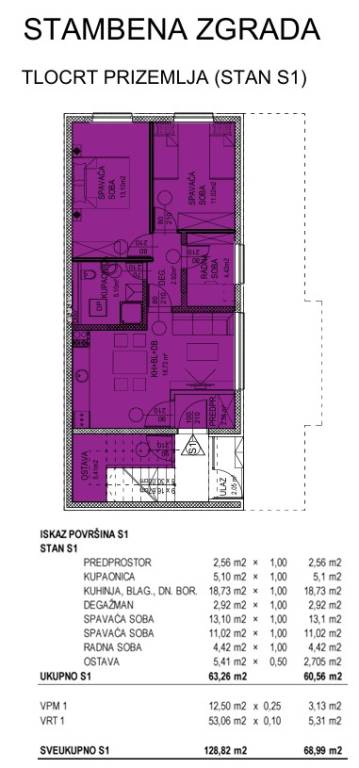 U ponudi trenutno pripremamo novi projekt čiji se početak gradnje očekuje u 4.mj. 2026.godine, a planirani završetak u 12.mj 2026. godine OPIS PROJEKTA: Novogradnja, Gornja Dubrava Četverosobni stan u prizemlju s ukupnom korisnom površinom od 128,82m2, odnosno obračunski 68,99m2. Objektu pripada prednji vrt te jedno parkirno mjesto. Objekt se nalazi u neposrednoj blizini svega što je potrebno za urbani stil života, kao što su trgovački centar, trgovine, sportsko-rekreacijski centar ŠRC Klaka, park Maksimir, park Dotršćina, KB Dubrava, crkva, vrtići, osnovne i srednja škola.. Javni prijevoz tramvaj/bus na svega 300m odnosno 5 min hoda.
