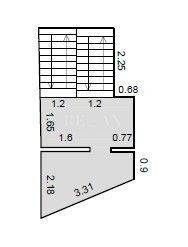 The main living area is on the 2nd floor and covers 123 m². It consists of an entrance hallway, a WC, a kitchen, a dining room, a living room, three bedrooms, and a bathroom. Additionally, internal stairs lead to the attic, which belongs to the apartment and offers 103 m² of usable space, divided into three sloped-ceiling rooms. On the mezzanine level at the entrance, there are two additional storage rooms with a total area of 10 m².