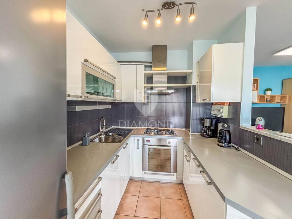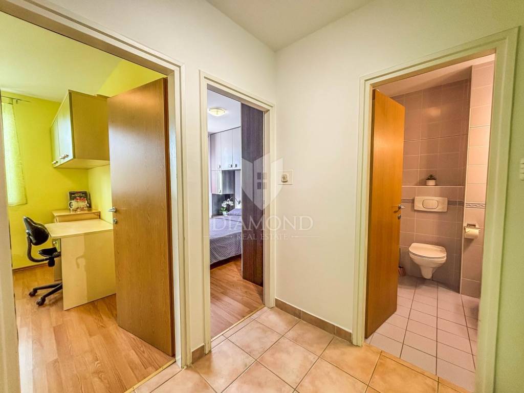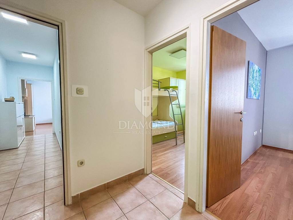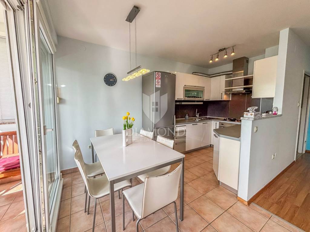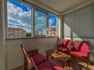 In the center of Umag, just a few steps from the beach and the city center, this exceptional apartment with a total living area of 67m2 awaits you. It is located on the second floor of a beautifully maintained residential building, and consists of a living room with kitchen and dining room, two bedrooms, bathroom, toilet and a large loggia. The loggia offers a beautiful view of the inner green courtyard. Heating and cooling are regulated by air conditioning. The apartment has a storage room in the basement of the building. The parking lot is available for use by the building.