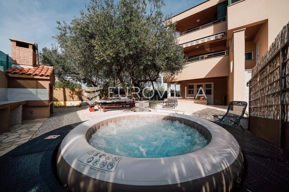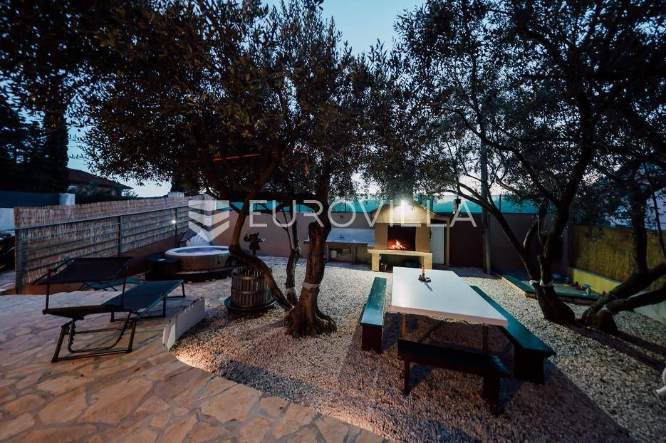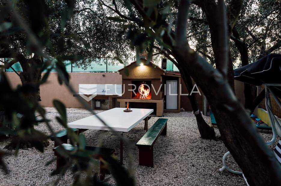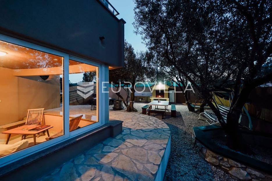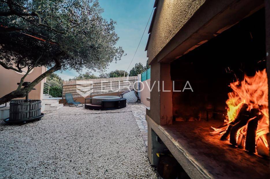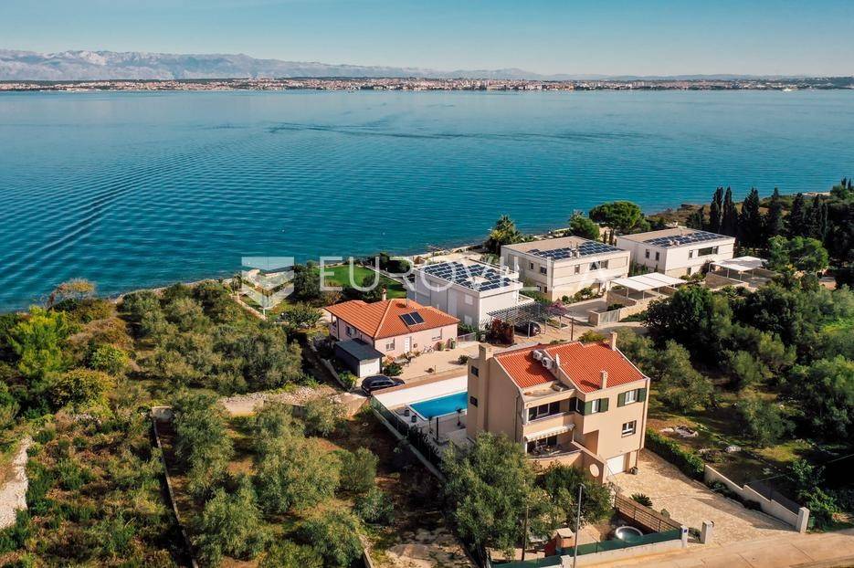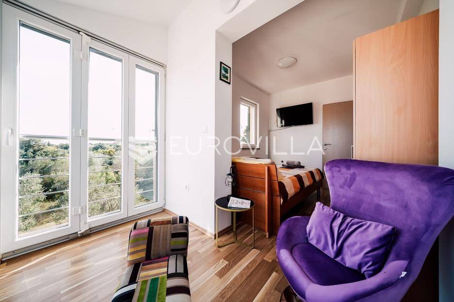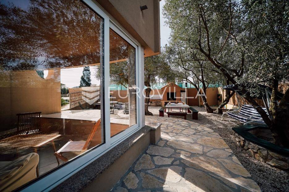 Sutomišćica, lijepa samostojeća kuća nalazi se na zemljištu površine 610 m2.Proteže se na tri etaže, a sastoji se od 235 m2 stambenog prostora.U prizemlju kuće površine 84 m2 nalazi se garaža, vešeraj, spremište, gostinjski wc, terasa i ljetna kuhinja.Na drugoj etaži nalazi kuhinja i blagovaonica prostrani dnevni boravak, kupaonica te terase, dok se na posljednjoj etaži nalaze četiri spavaće sobe te kupaonica.U dvorištu uređenom u mediteranskom stilu nalazi se bazen.S terasa se pruža pogled na more te na grad Zadar.Kuća je potpuno namještena i opremljena.Sustav grijanja i hlađenja uređen je putem klima uređaja, uz mogućnost grijanja na drva.Postoji priprema i projekt za solarnu elektranu.Uredno vlasništvo.Više informacija na upit.