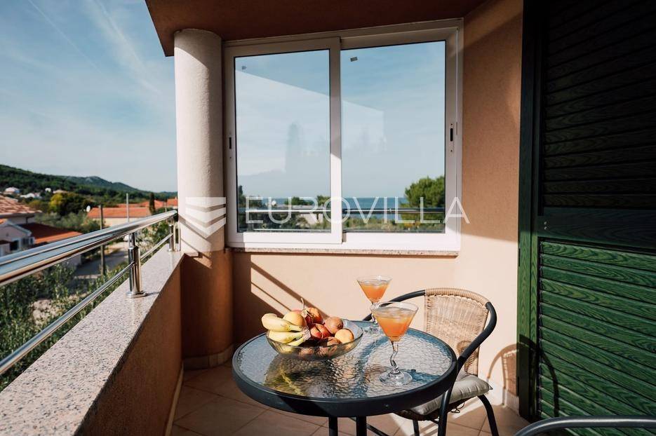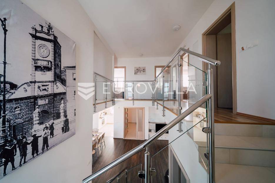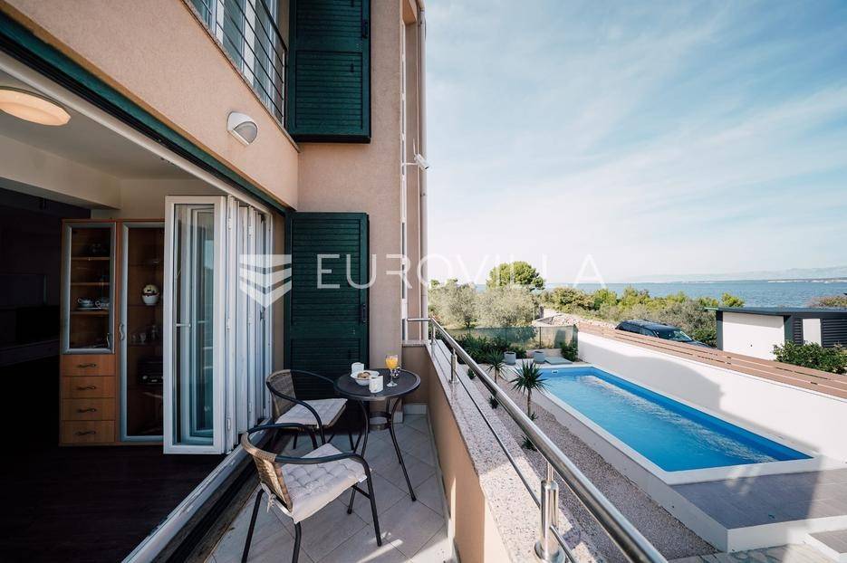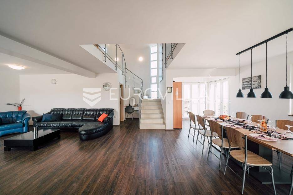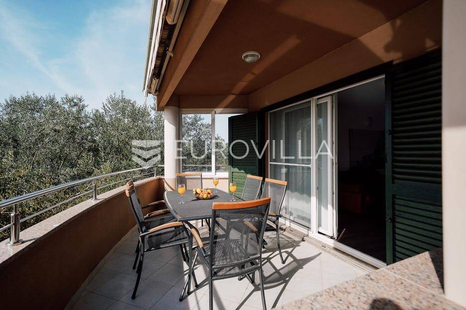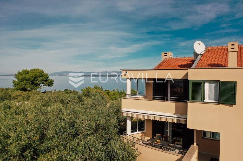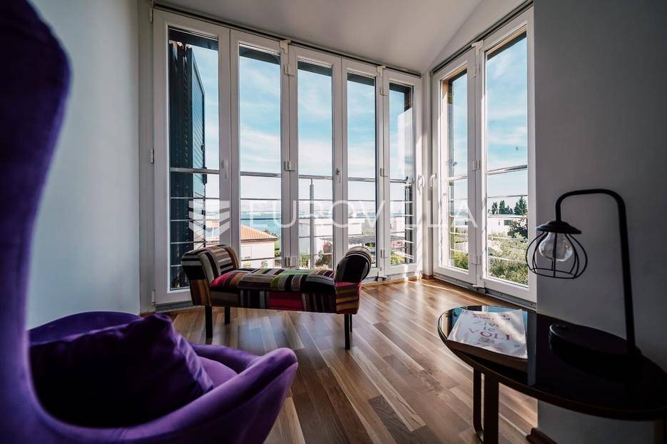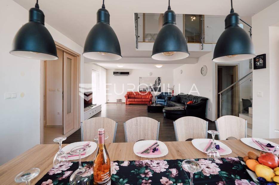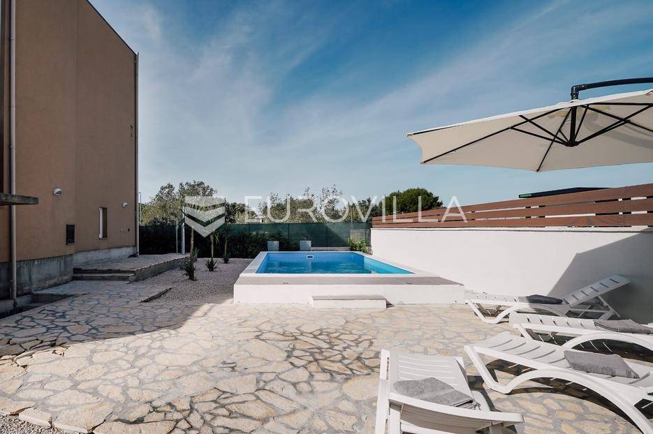 Sutomišćica, lijepa samostojeća kuća nalazi se na zemljištu površine 610 m2.Proteže se na tri etaže, a sastoji se od 235 m2 stambenog prostora.U prizemlju kuće površine 84 m2 nalazi se garaža, vešeraj, spremište, gostinjski wc, terasa i ljetna kuhinja.Na drugoj etaži nalazi kuhinja i blagovaonica prostrani dnevni boravak, kupaonica te terase, dok se na posljednjoj etaži nalaze četiri spavaće sobe te kupaonica.U dvorištu uređenom u mediteranskom stilu nalazi se bazen.S terasa se pruža pogled na more te na grad Zadar.Kuća je potpuno namještena i opremljena.Sustav grijanja i hlađenja uređen je putem klima uređaja, uz mogućnost grijanja na drva.Postoji priprema i projekt za solarnu elektranu.Uredno vlasništvo.Više informacija na upit.