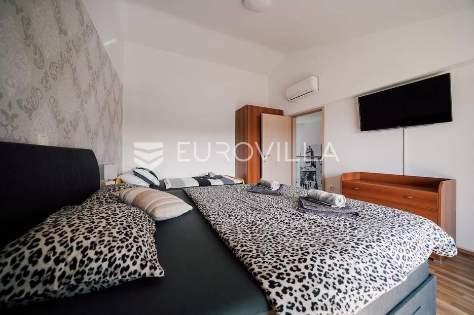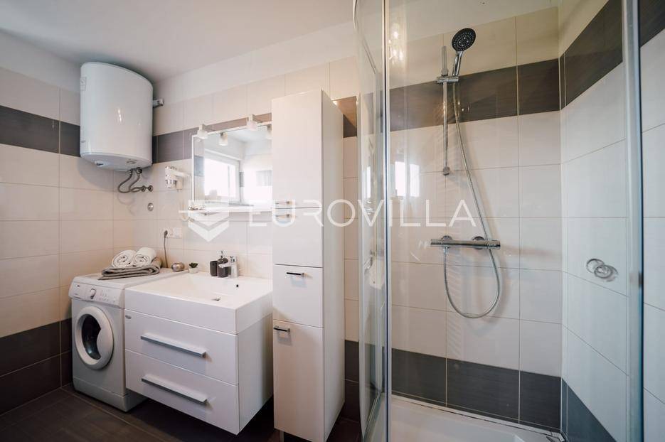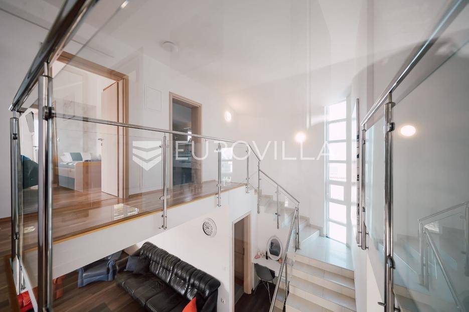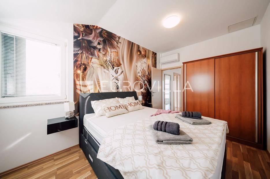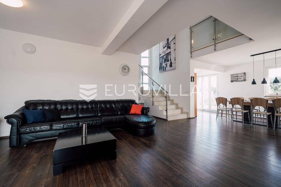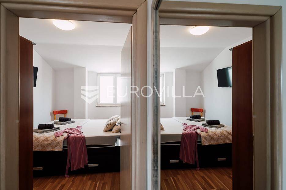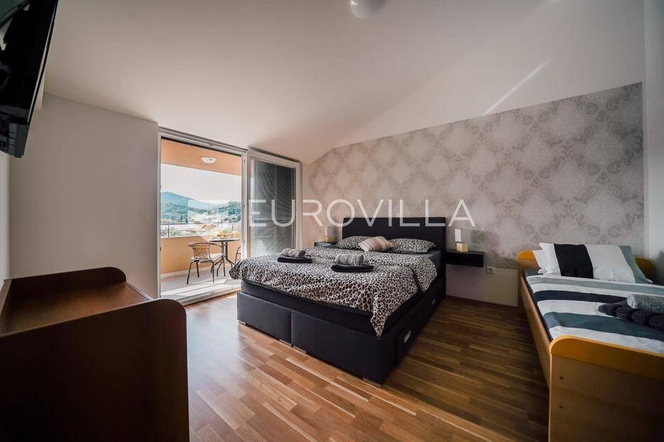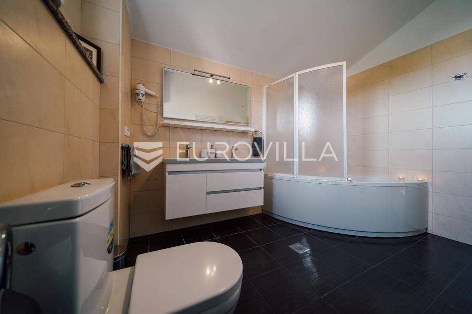 Sutomišćica, lijepa samostojeća kuća nalazi se na zemljištu površine 610 m2.Proteže se na tri etaže, a sastoji se od 235 m2 stambenog prostora.U prizemlju kuće površine 84 m2 nalazi se garaža, vešeraj, spremište, gostinjski wc, terasa i ljetna kuhinja.Na drugoj etaži nalazi kuhinja i blagovaonica prostrani dnevni boravak, kupaonica te terase, dok se na posljednjoj etaži nalaze četiri spavaće sobe te kupaonica.U dvorištu uređenom u mediteranskom stilu nalazi se bazen.S terasa se pruža pogled na more te na grad Zadar.Kuća je potpuno namještena i opremljena.Sustav grijanja i hlađenja uređen je putem klima uređaja, uz mogućnost grijanja na drva.Postoji priprema i projekt za solarnu elektranu.Uredno vlasništvo.Više informacija na upit.