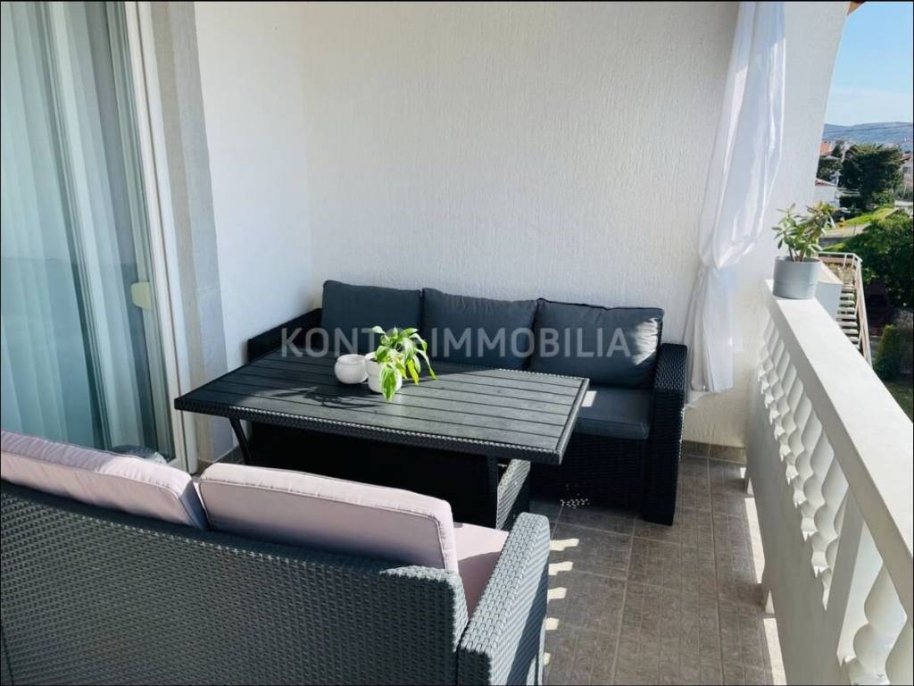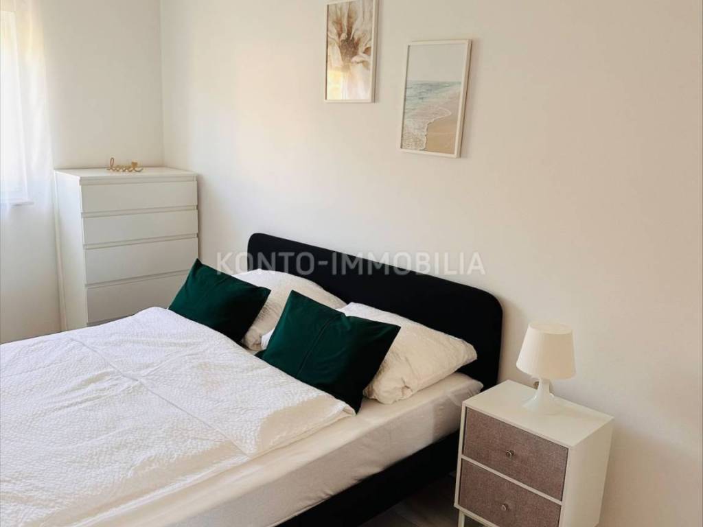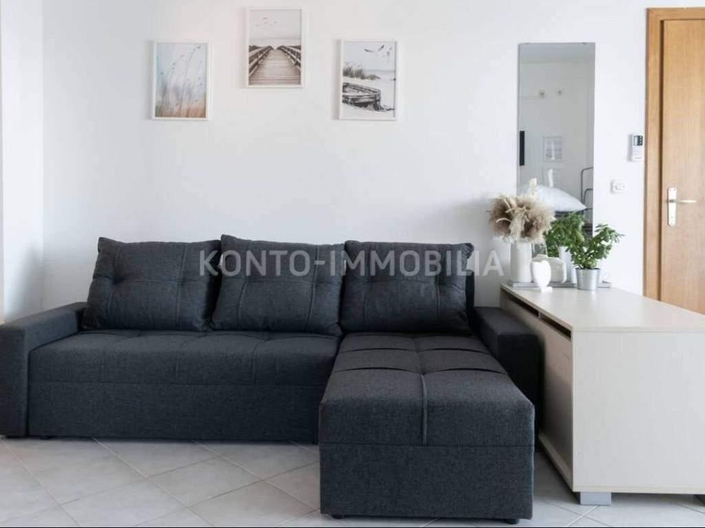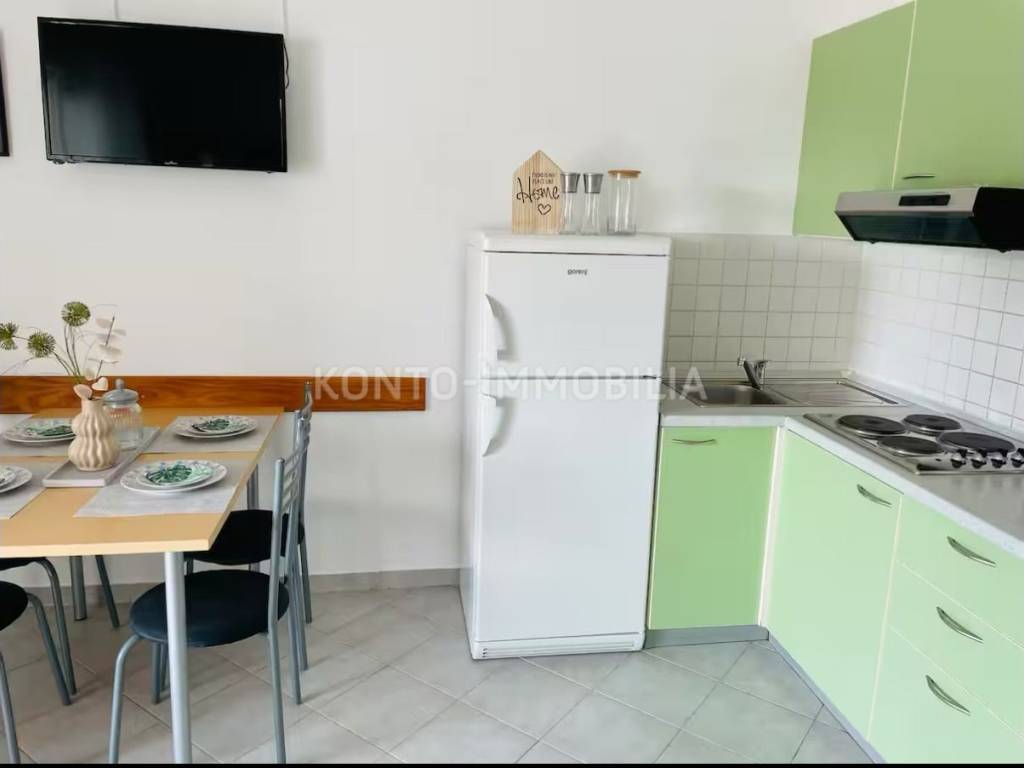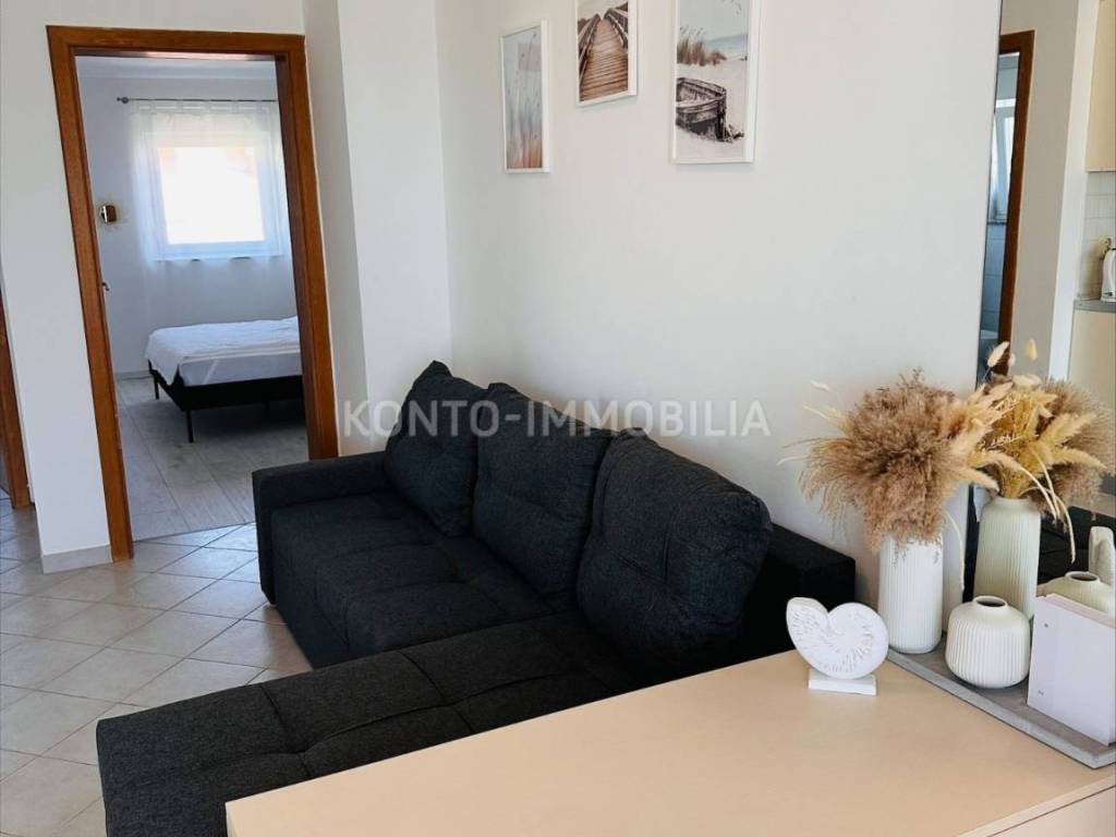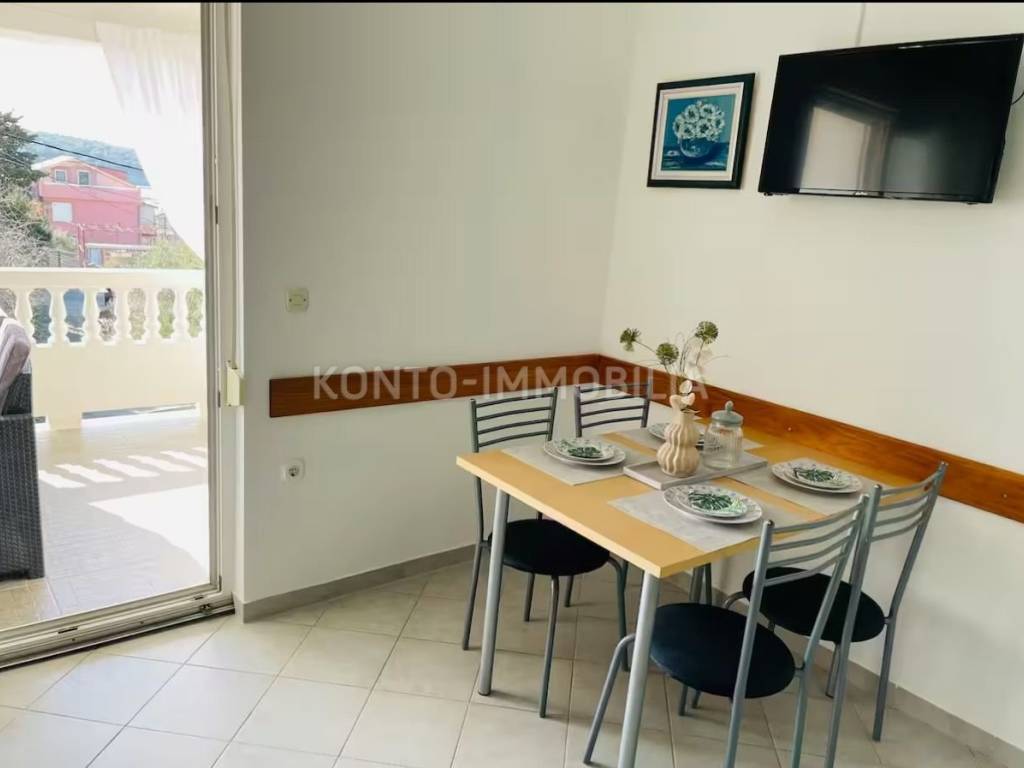 An apartment for sale in an excellent location, just 150 m from the sea and with a sea view. The apartment is located in a residential building, with a total of 6 apartments, on the 2nd floor. It consists of a kitchen with a dining room and living room, two bedrooms, a bathroom and a spacious covered terrace. The apartment is furnished and air-conditioned (heating/cooling). The apartment also has one parking space in the building's yard. An ideal vacation property!