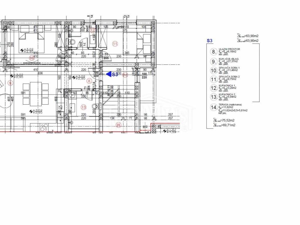 Apartment S3 features a modern design and functional layout, with a total usable area of 69.71 m².