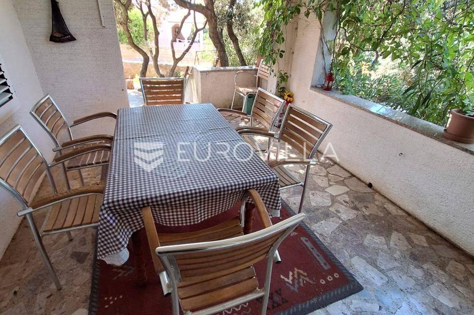 Pag, Mandre, na zemljištu površine 457 m2, nalazi se kuća sa dva stana.Na prvoj etaži nalazi se podrum, pogodan za konobu ili dodatne sadržaje po želji.Na prvom katu nalazi se stan sa dvije spavaće sobe, kuhinjom, blagovaonicom, kupaonicom, hodnikom te natkrivenom terasom.Stan na trećoj etaži ima zaseban ulaz, a sastoji se od ulaznog prostora, kuhinje i blagovaonice, dvije spavaće sobe, kupaonice, te velike terase s djelomičnim pogledom na more.U dvorištu je osiguran parking za dva automobila.Kuća ima dvorište koje nudi dovoljno prostora za uživanje na otvorenom, a vrt je lijepo uređen mediteranskim zelenilom.U vanjskom dijelu nalazi se roštilj, kotlovnica, i pomoćni wc.Nekretnina se nalazi na 300 metara udaljenosti od mora što je čini izvrsnom prilikom za obiteljsku kuću, vikendicu ili investiciju u turizam.Više informacija na upit.