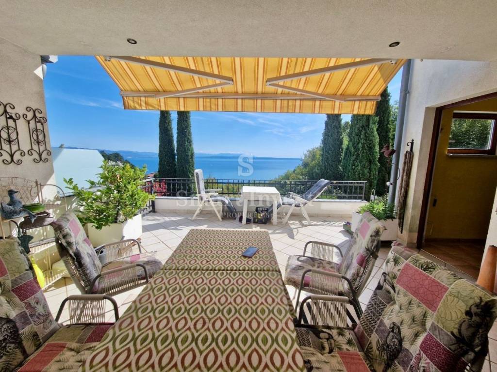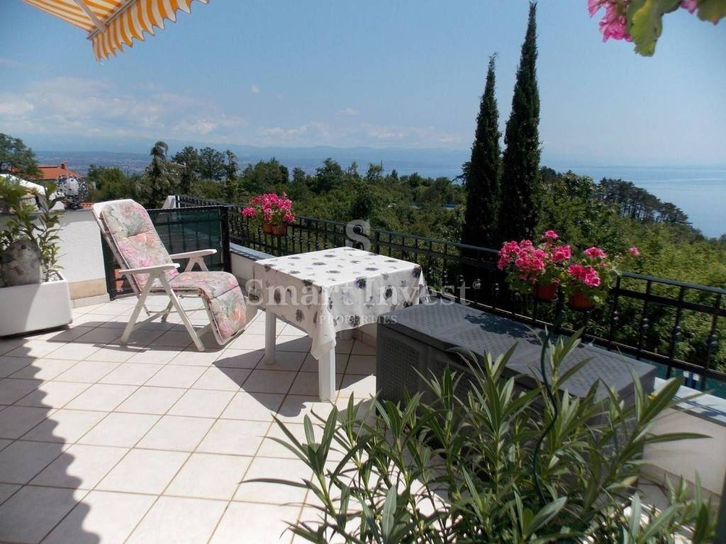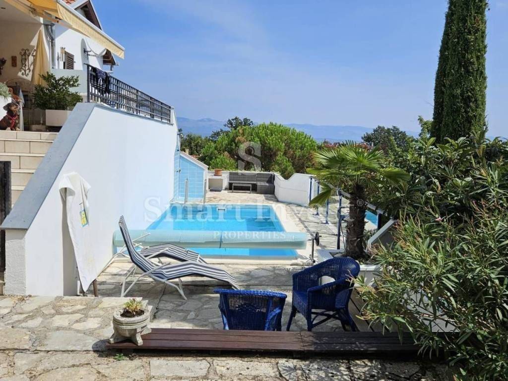 OPATIJA - VEPRINAC, for sale is an semi-detached house with a shared pool and a view of the sea in a beautiful and quiet location. The house with an area of ​​105.81 m2 consists of two floors. On the ground floor there is a spacious terrace for socializing, a living room, a kitchen with a dining room, a storage room and a laundry room. From the living room there are stairs to the second floor where there are two bedrooms, a bathroom and a terrace of 42 m2. The heating is on a wood stove, and the bedroom has an inverter air conditioner. The house has a garden of 332.73 m2 and a parking space of 27 m2. Beautiful quiet location 15 minutes drive from the sea and the center of Opatija. For more information and a viewing appointment, call: +385/99/320-0008 ID CODE: 6285 Katarina Žiganto Agent s licencom Mob: +385/91/3200021 E-mail: katarina@smart-invest.hr www.smart-invest.hr