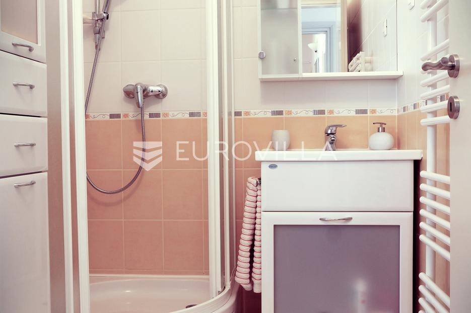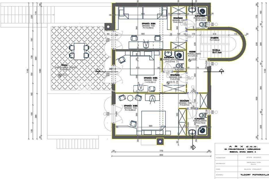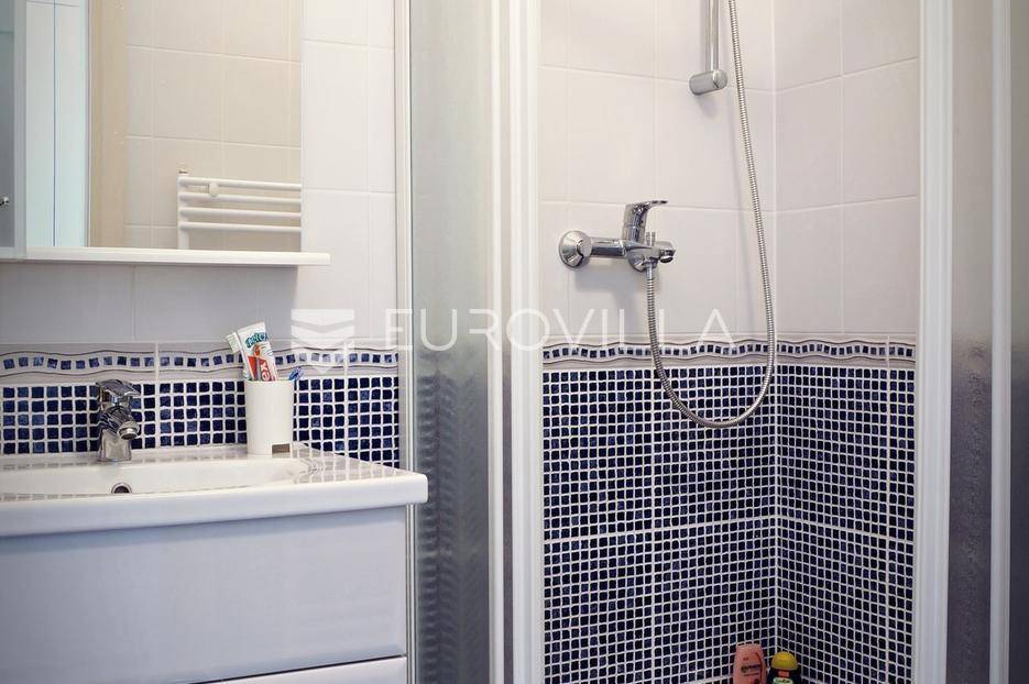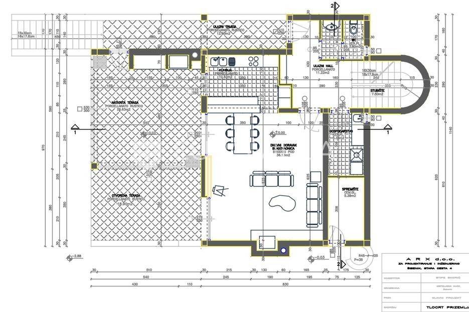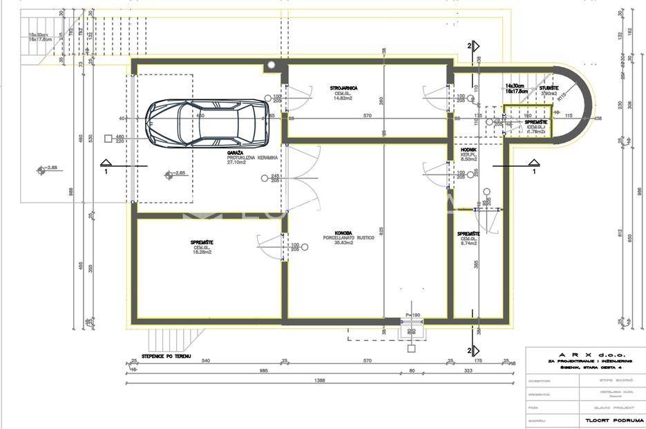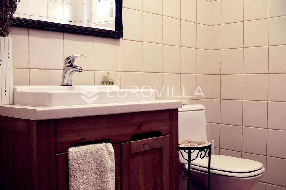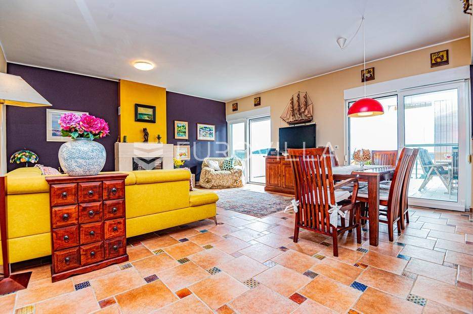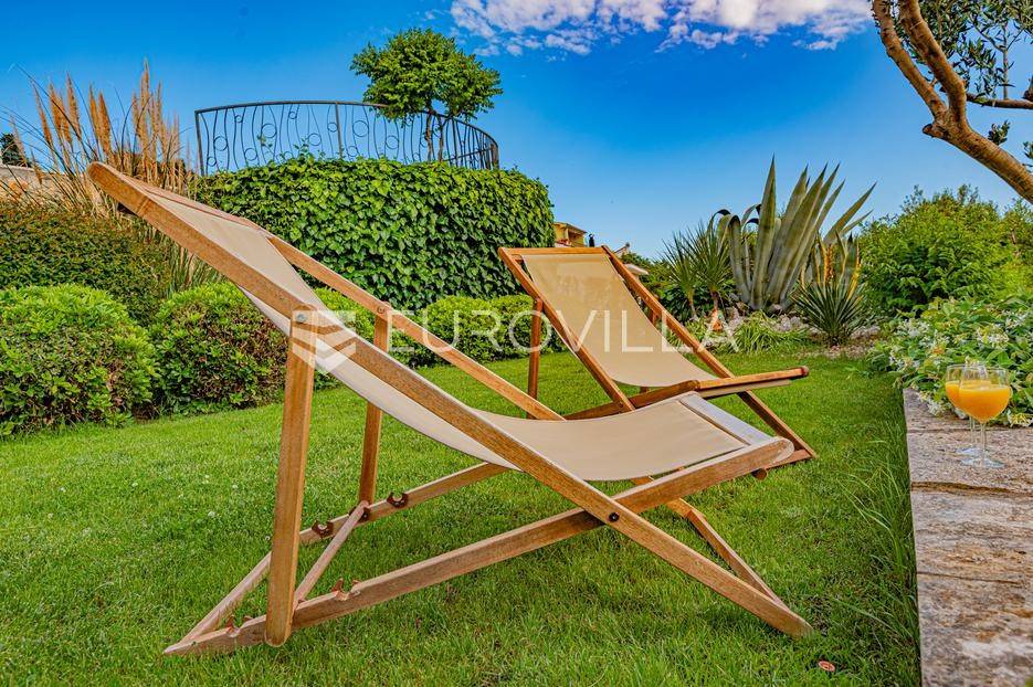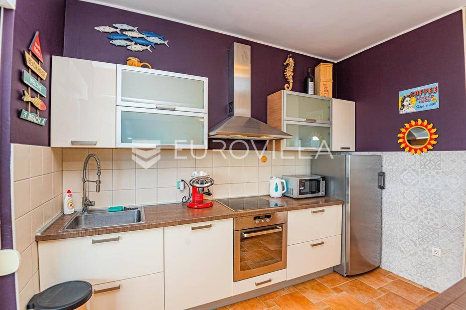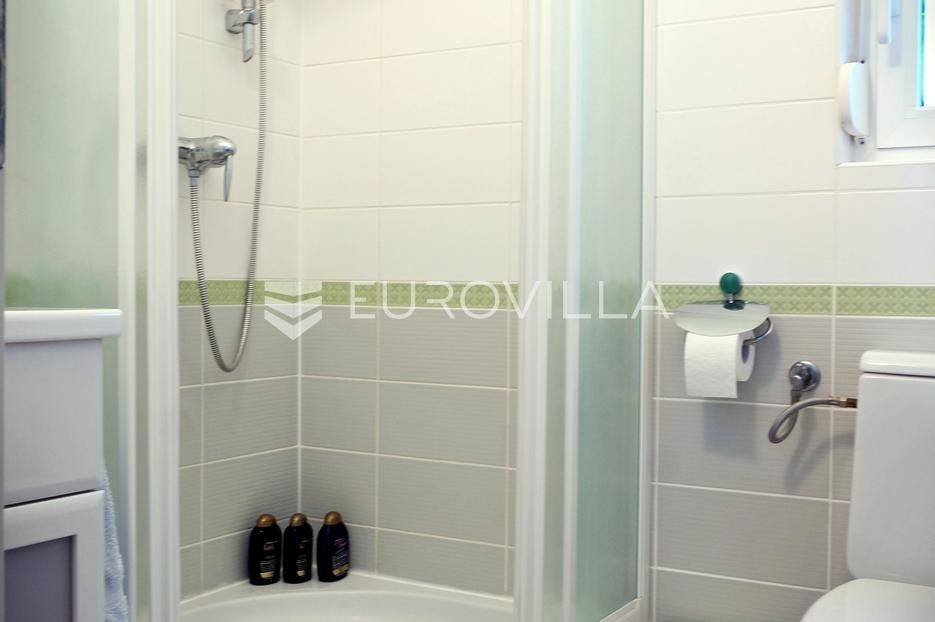 Šibenik, Žaborić, prekrasna kuća s bazenom i panoramskim pogledom na more, ukupne površine 438 m² izgrađena 2004. godine. Prodaje se potpuno namještena i opremljena, te idealna za odmor ili turistički najam.Izgrađena na parceli od 1215 m²., sastoji se od podruma u kojem je smještena garaža za dva automobile, strojarnica, konoba, te dva spremišta. U prizemlju se nalazi prostrani dnevni boravak s kuhinjom i blagovaonicom, spremište, vešeraj i toalet. Iz boravka se izlazi na veliku natkrivenu terasu s pogledom na more, na kojoj se nalazi komin i prostor za druženje. Na katu su smještene tri spavaće sobe od kojih svaka ima privatnu kupaonicu, a dvije sobe imaju i izlaz na terasu s pogledom na more.Kuća je građena po vrhunskim standardima, te je jako lijepo uređena. Okružena je jako lijepim vrtom koji je odlično uređen i održavan, te se u njemu nalazi i veliki bazen i prostor za sunčanje.Sve ostale informacije na upit.