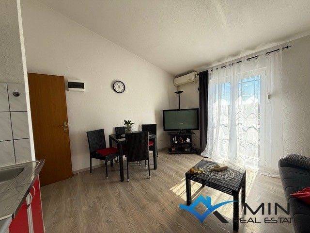 A charming flat for sale situated in an excellent location in Novigrad, close to all amenities. The flat is on the first floor and has an area of 39 m². It comprises a hallway, bathroom, bedroom, and an open-plan space featuring a kitchen with dining area and a living room with access to a terrace offering a beautiful view of the sea. Heating and cooling are provided by an air conditioning unit. The property includes one parking space. The distance to the town centre is 850 metres, and it is 700 metres from the sea and a beautifully maintained beach.