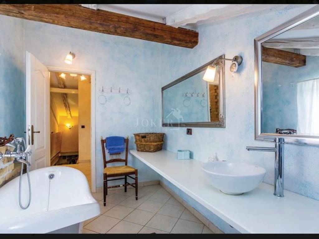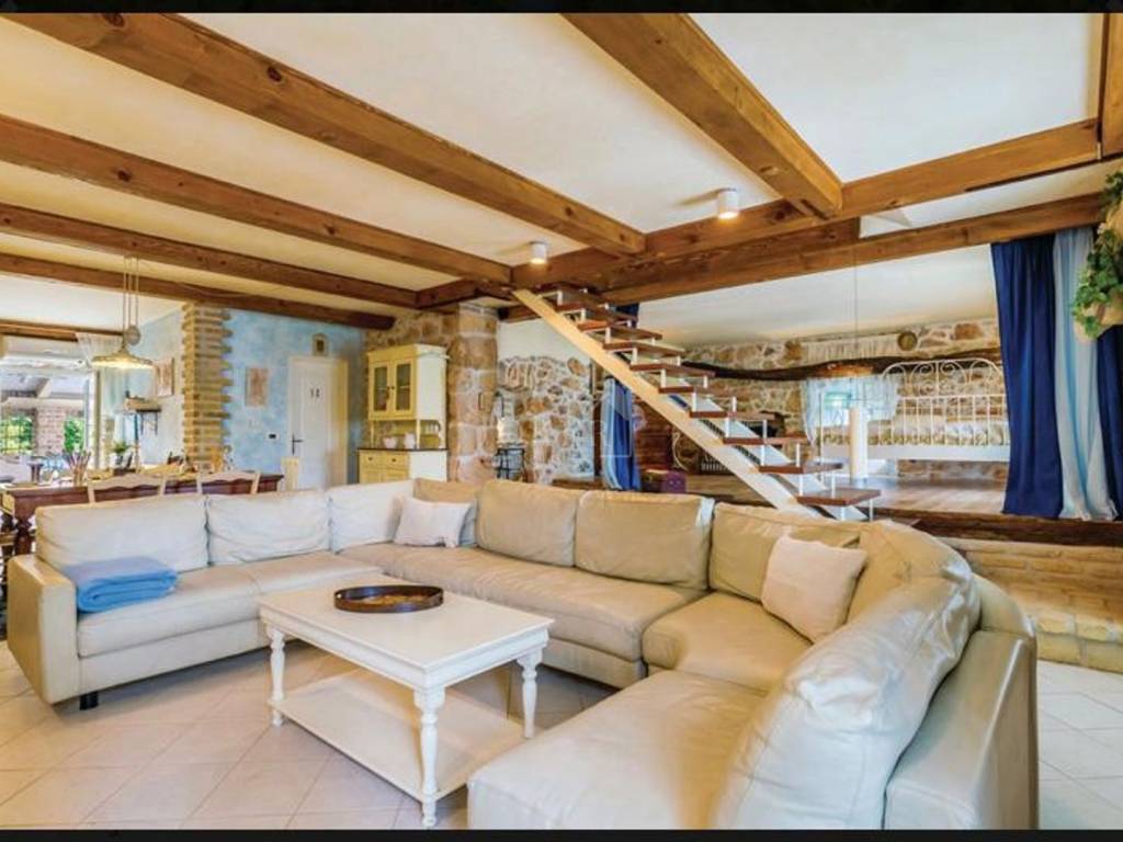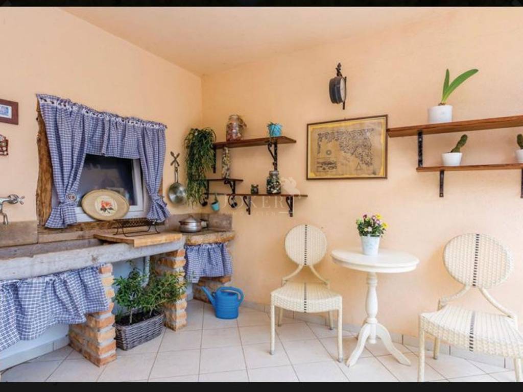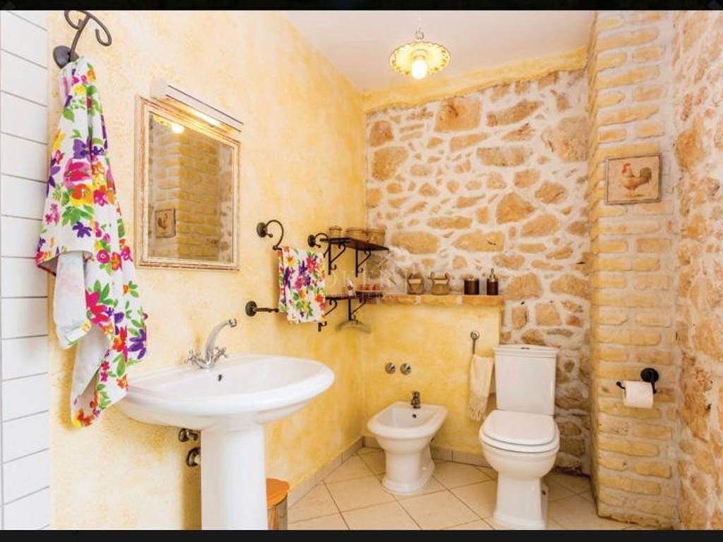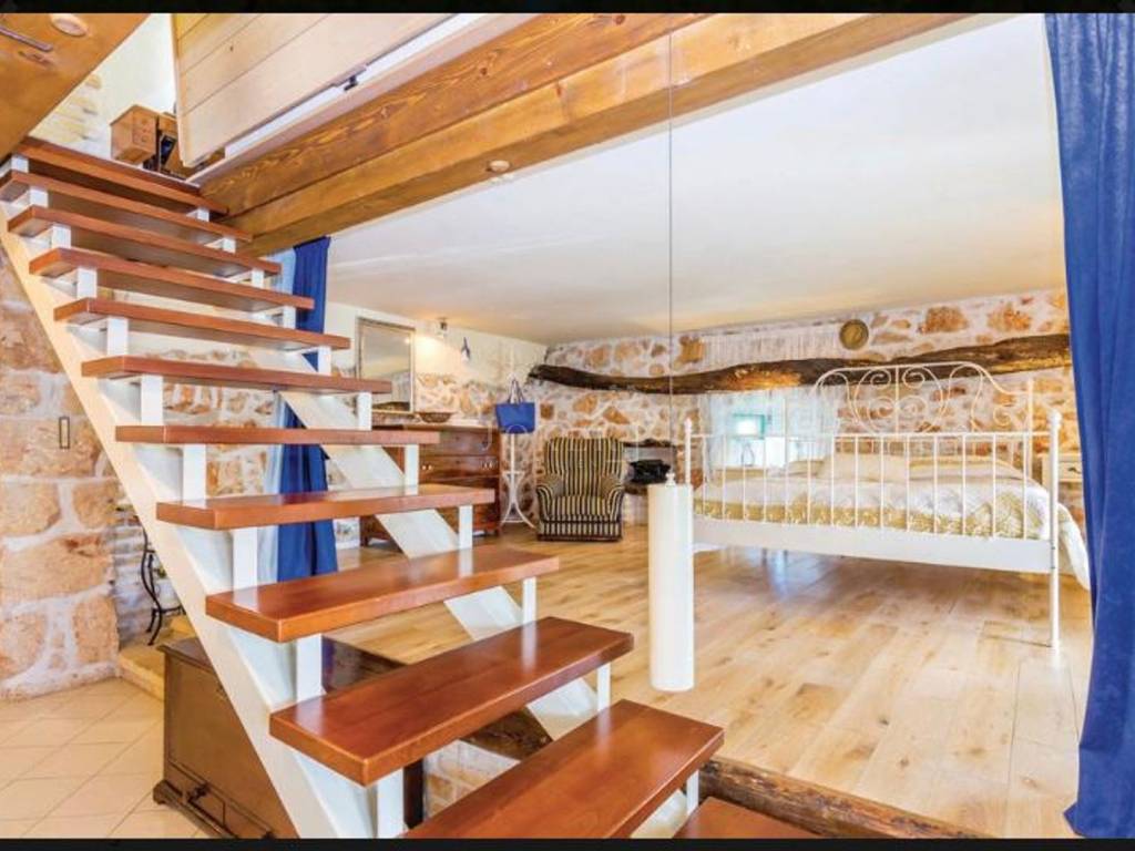 U prizemlju se nalazi apartman oko 25m2 ka i konoba uređena u kamenu sa starim tošem(mlinom) u sredini konobe. tu se još nalazi vanjska kuhinja i vešeraj.