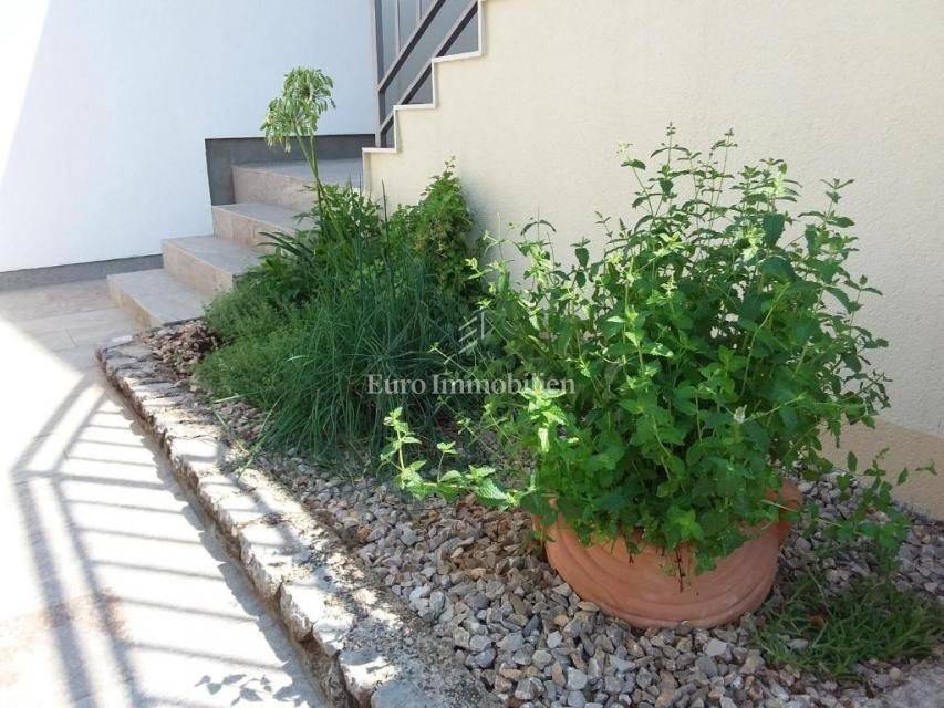 The apartment is only 150 m from the sea, and for summer gatherings there are two terraces accessible from the living room. The property also includes a basement storage room. The apartment comes with 76 m² of garden.