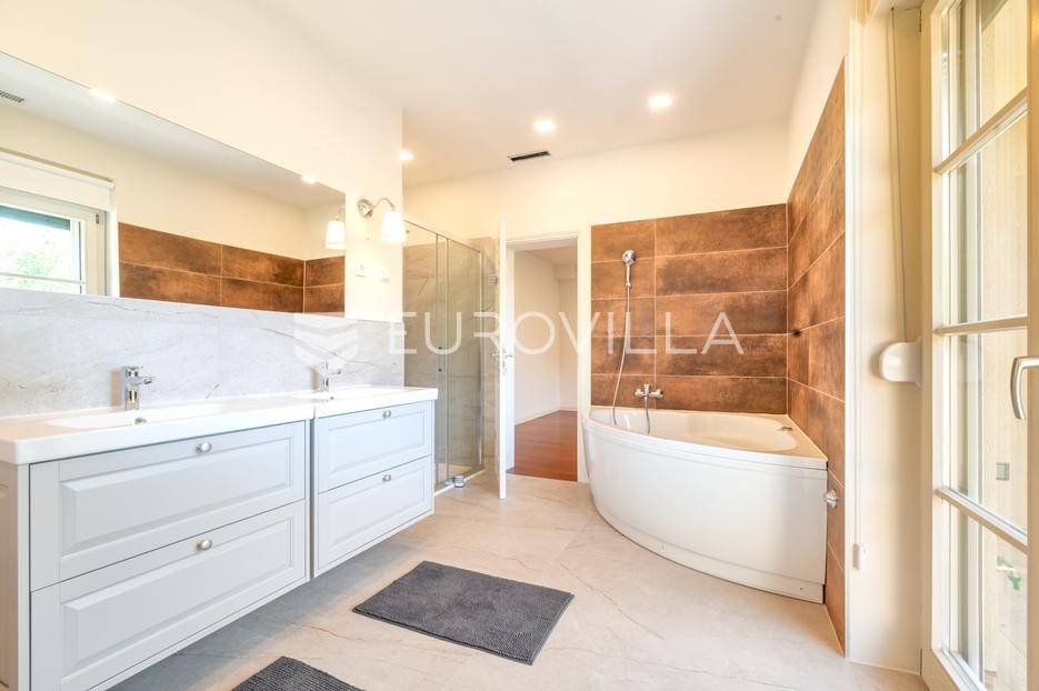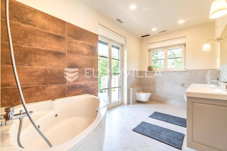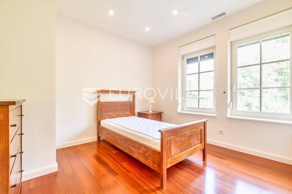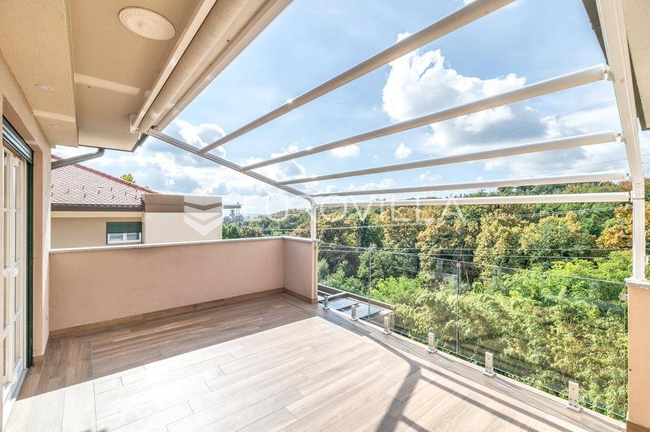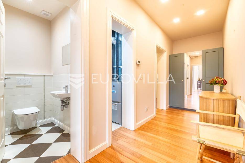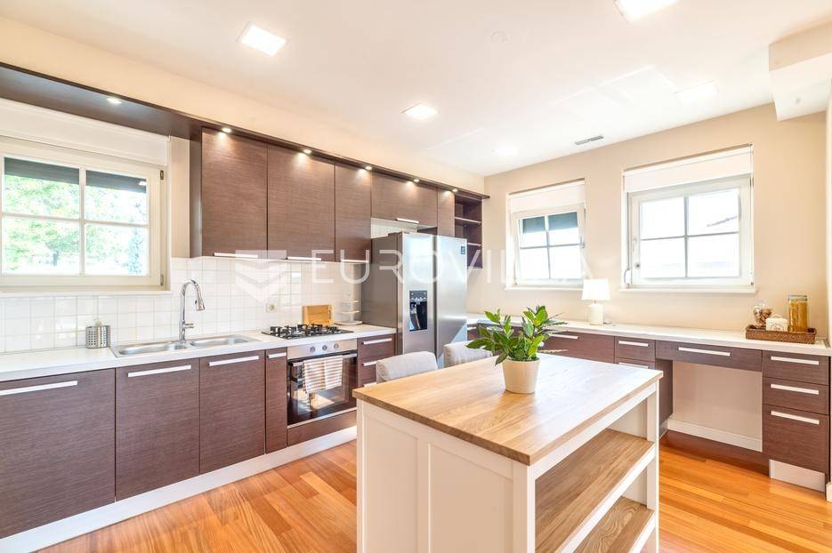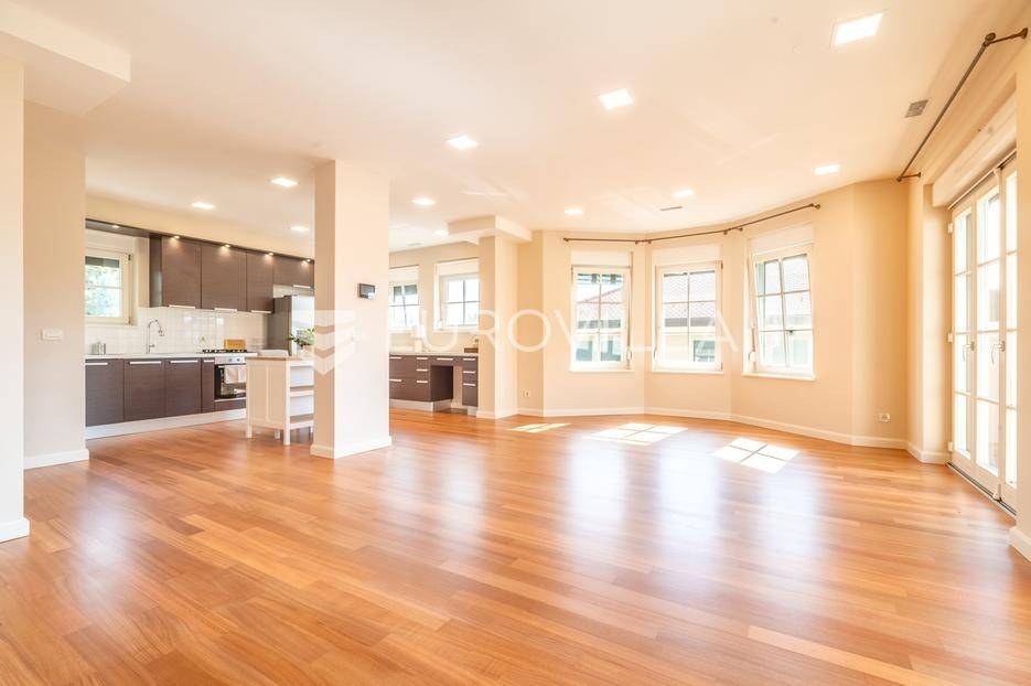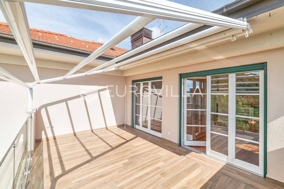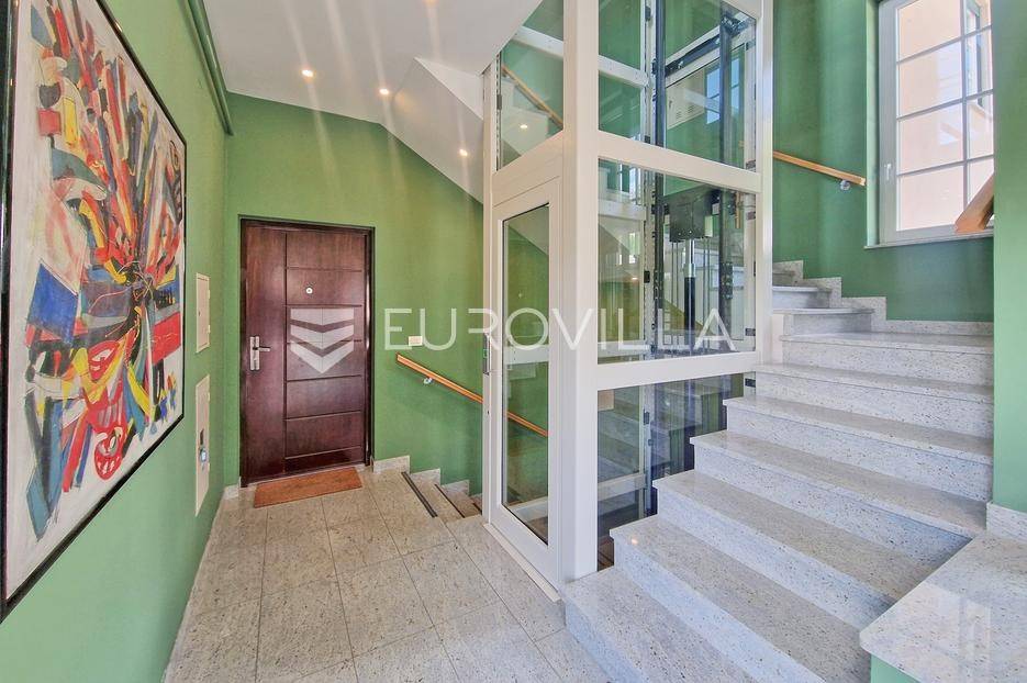 Zagreb, ulica Kameniti stol, prekrasan četverosoban penthouse u urbanoj vili, na 2. katu s liftom. Sastoji se od ulaznog hodnika, gostinjskog toaleta, smočnice, kuhinje povezane s blagovaonicom i velikim prostranim dnevnim boravkom, master spavaće sobe s kupaonicom i balkonom, dodatne dvije spavaće sobe te još jedne kupaonice. Spavaći dio stana potpuno odvojen od dnevnog dijela. Na balkonu master spavaće sobe moguće dodatno ugraditi Jacuzzi. Stan je opremljen grijanjem i glađenje kroz zračne komore, centralnim usisavačem, podnim grijanjem u master kupaonici, rolete te komarnici na svim prozorima. Stanu pripada ostava u podrumu od 35 m2 u kojoj se nalazi vešeraj te prostor za odlaganje. Parkiranje za dva automobila omogućeno na natkrivenim parkirnim mjestima, no postoji mogućnost parkiranja za goste i to do još 2 parkirna mjesta. Stan je trenutačno polu namješten. Sve dodatne informacije na upit.