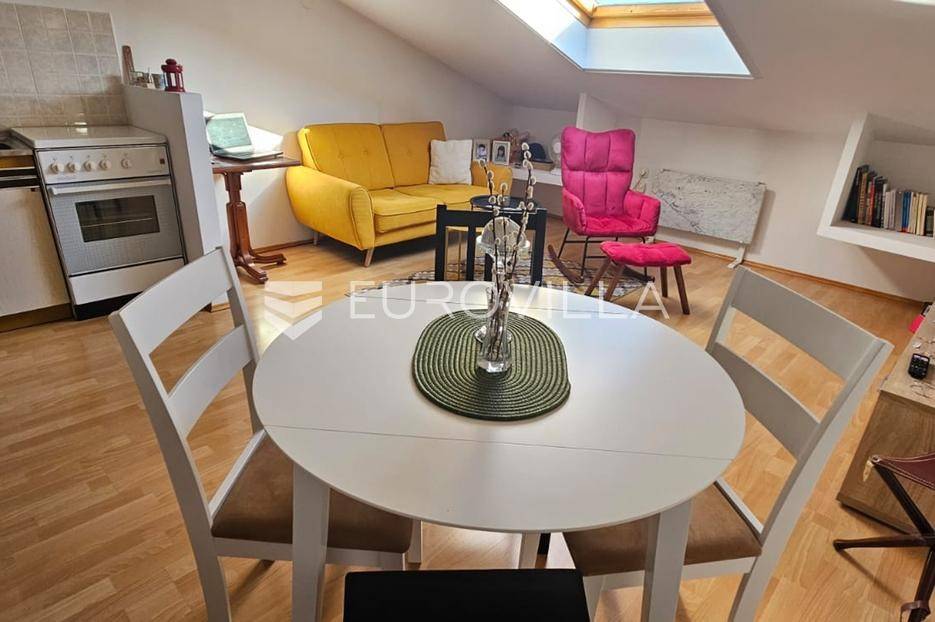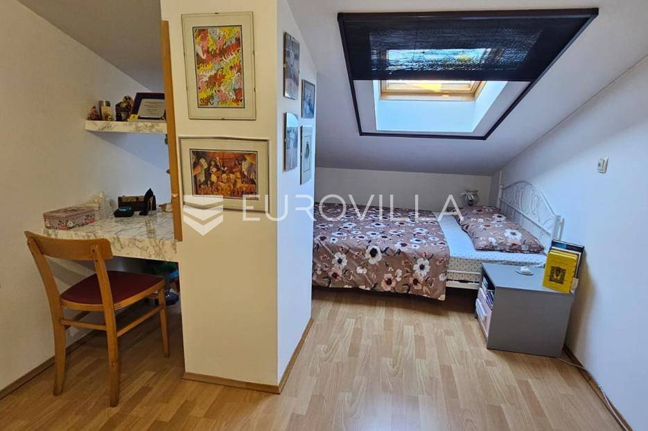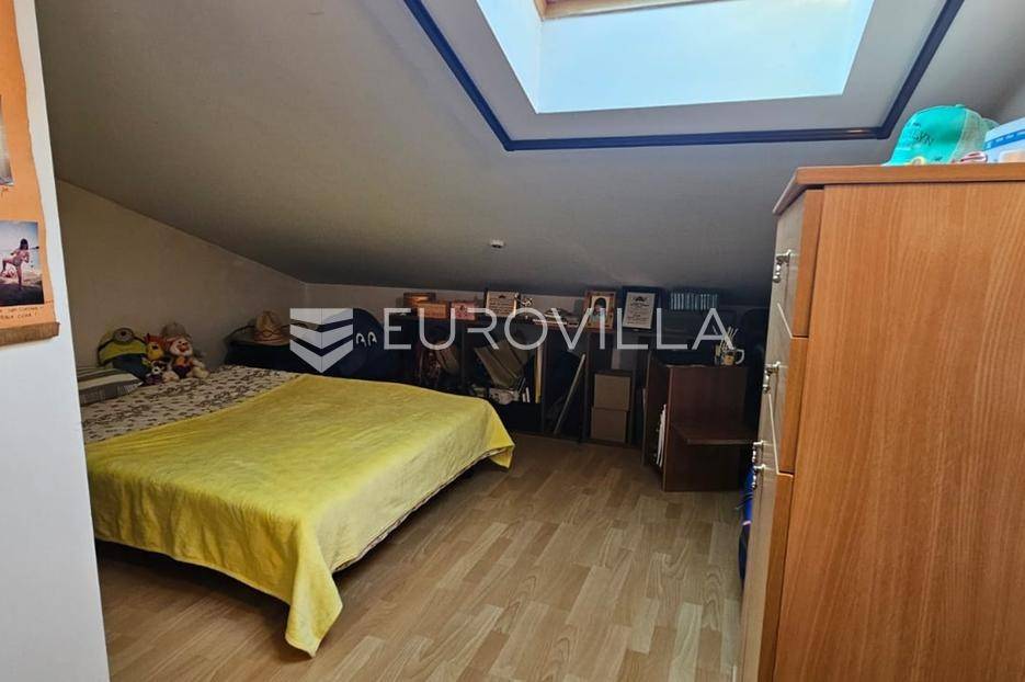 Na mirnoj i traženoj lokaciji u Jušićima prodaje se prostran i funkcionalan dvoetažni stan smješten na drugom katu i visokom potkrovlju manje stambene zgrade.Stan se prostire kroz dvije etaže koje zajedno nude izuzetno dobar raspored i mnogo prostora:Donja etaža obuhvaća prostrani dnevni boravak s kuhinjom i blagovaonicom, dvije spavaće sobe, kupaonicu, hodnik, ostavu, unutarnje stubište te veliku natkrivenu loggiu s otvorenim pogledom.Gornja etaža sastoji se od još dvije spavaće sobe, dodatne kupaonice, hodnika te otvorenog prostora koji služi kao drugi dnevni boravak s kuhinjom i blagovaonicom. Krov je kvalitetno izoliran, što dodatno doprinosi ugodnom boravku i energetskoj učinkovitosti prostora. Ova etaža idealna je za goste, veću obitelj ili se može lako odvojiti kao zasebna stambena jedinica.Stanu pripada natkriveno parkirno mjesto ispred zgrade te uređeni vrt od 10 m² smješten iza zgrade - savršeno za odmor ili vrtlarenje.Grijanje je organizirano pomoću peći na drva i električnih radijatora, dok klima uređaj dodatno osigurava komfor u svim godišnjim dobima.Ova nekretnina nudi niz mogućnosti: od preinake u dvije zasebne jedinice koja je tlocrtno vrlo fleksibilna i prilagodljiva različitim potrebama.Odlična prilika za obiteljski dom, investiciju ili kombinaciju privatnog stanovanja i turističkog najma.Za dodatne informacije i dogovor oko razgleda, slobodno nas kontaktirajte.