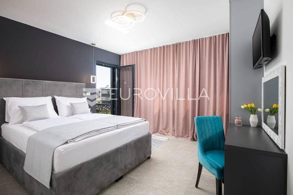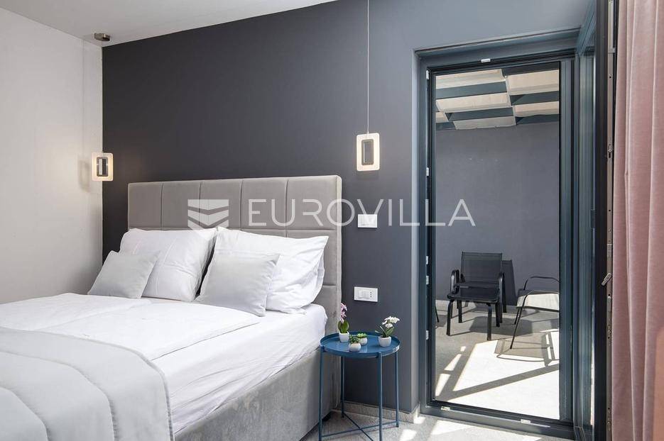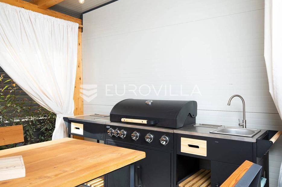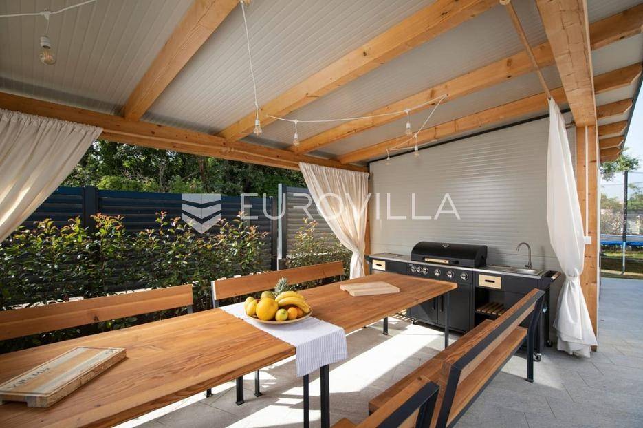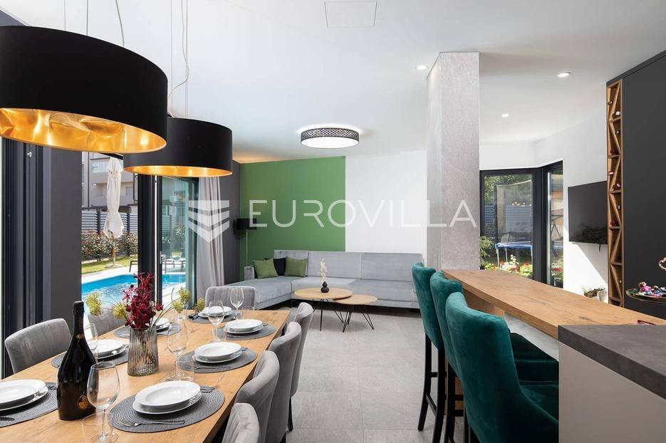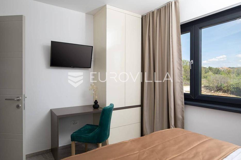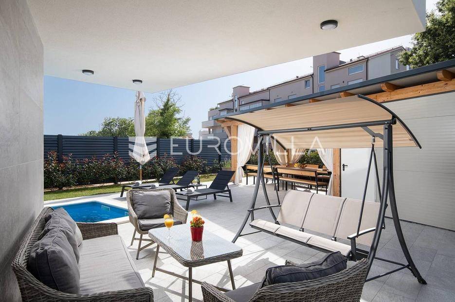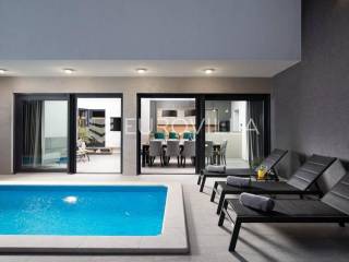 U Medulinu, jednoj od najtraženijih lokacija, nudimo moderno dizajniranu novogradnju iz 2025. godine koja se proteže na 300 m2 i smještena je na parceli od 483 m2.Sastoji se od podruma, prizemlja i kata.Podrum je iskorišten za wellness dok se u prizemlju smjestio glavni dio krenuvši od ulaza, prostranog open space dnevnog boravka s kuhinjom i blagovaonicom i tri spavaće sobe sa vlastitim kupaonicama. Unutarnjim stepeništem se penjemo na kat gdje su pet spavaćih soba s vlastitim kupaonicama, vešeraj te dvije natkrivene terase. Jedna terasa povezuje dvije spavaće sobe dok se drugoj terasi pristupa iz hodnika.Opisani dnevni prostor u prizemlju pruža komunikaciju s terasom i vrtom.Vrt je ukrašen bazenom, sunčalištem, ljetnom kuhinjom, dječjim igralištem, parkirnim mjestima te ostavlja dovoljno slobodnog prostora za druženje na otvorenom.Ova nekretnina, potpuno uređena i opremljena, predstavlja jedinstvenu priliku za dugoročni najam, spajajući luksuz, udobnost i prestižnu lokaciju u srcu Istre.Za više informacija ili dogovor za razgledavanje, slobodno nas kontaktirajte.