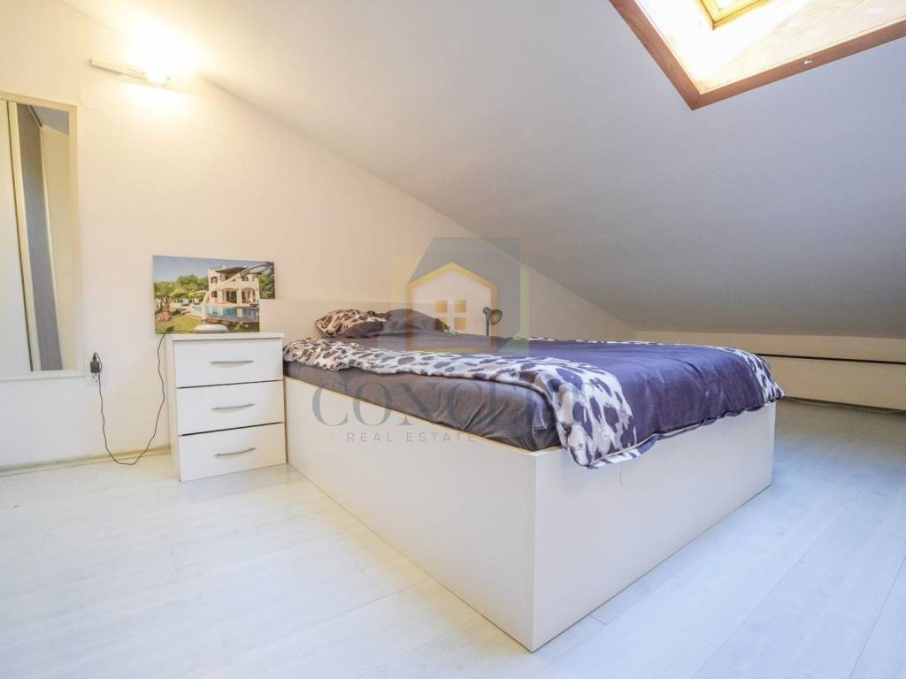 In an excellent location, just 4 km from Poreč and the sea, an apartment on the third floor of a building with a total area of 126 m² is for sale.The apartment consists of an entrance hall, an open-concept living room, kitchen, and dining area, two bedrooms, and two bathrooms. Both bathrooms, as well as the kitchen, include storage spaces, while one bathroom also has an additional storage area functioning as a built-in closet. This entire bathroom with the attached storage can be converted into a third bedroom if needed.The apartment is equipped with an air conditioning unit in the living area and two French radiators, one in the living space and the other in the bathroom. The living area also features a chimney, providing the future owner with the option to install a stove.The west orientation and sea view add extra value to this apartment. The price includes a woodshed of 4.9 m² and one covered parking space.For more information and to arrange a viewing, please feel free to contact us.