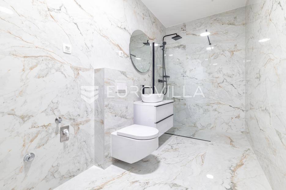 Zagreb, Črnomerec - luksuzan stan za najam (S4 - NKP 94,1 m² + 2 loggie 5,32 m²)U luksuznoj novogradnji u mirnom dijelu Črnomerca iznajmljuje se prostran četverosoban stan vrhunske izvedbe. Objekt ima energetsku oznaku A+, podno grijanje, PVC troslojnu stolariju, lift i videoportafon.Stan na 1. katu sastoji se od dnevnog boravka s kuhinjom i blagovaonicom, tri spavaće sobe, dvije kupaonice i hodnika.