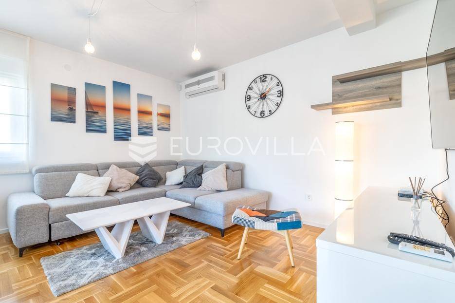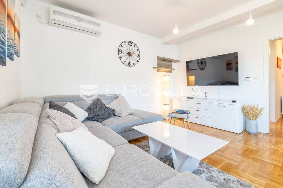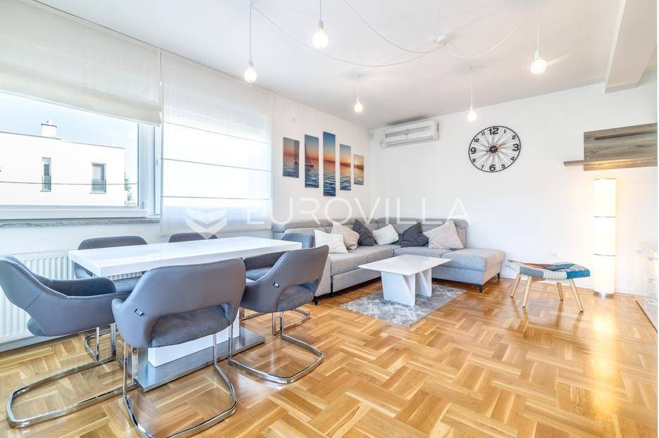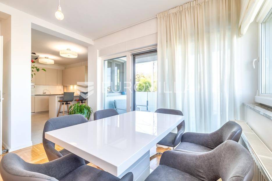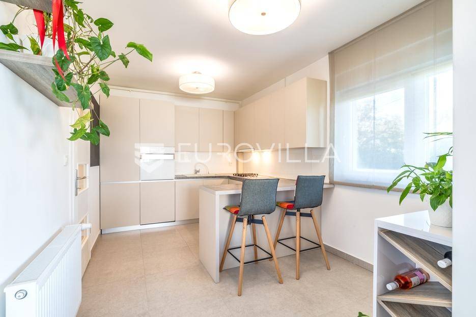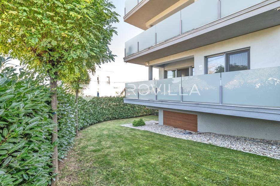 Zagreb, Gračani, predivan trosoban stan površine 78 m2 u novijoj modernoj zgradi s vrtom površine 132 m2. Pripadaju mu dva vanjska parkirna mjesta pod rampom te spremište u podrumu zgrade. Ukupne površine NKP 118 m2.Sastoji se od ulaznog prostora, dnevnog boravka s kuhinjom i blagovaonicom koji izlazi na terasu, dvije prostrane spavaće sobe, gostinjskog toaleta te kupaonice s perilicom i sušilicom rublja.Potpuno moderno namješten i opremljen, klimatiziran, etažno plinsko grijanje, električni podizači roleta, komarnici, protuprovalna vrata, video nadzor, alarm. Svijetao i ugodan stan, odlično održavan, malo korišten.Nalazi se u mirnoj i tihoj ulici okružen zelenilom u blizini trgovačkog centra Meridijan i svih sadržaja.Stan je dostupan za useljenje od 10/2025.Za sve ostale upite Vam stojimo na raspolaganju.