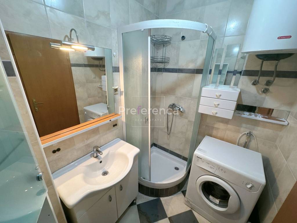 For sale is a ground floor apartment with an area of 43.80 m2, featuring a spacious loggia of 16.92 m2 (enclosed as a dining room) and a landscaped garden of 71 m2 which includes a garage and a summer kitchen with barbecue.