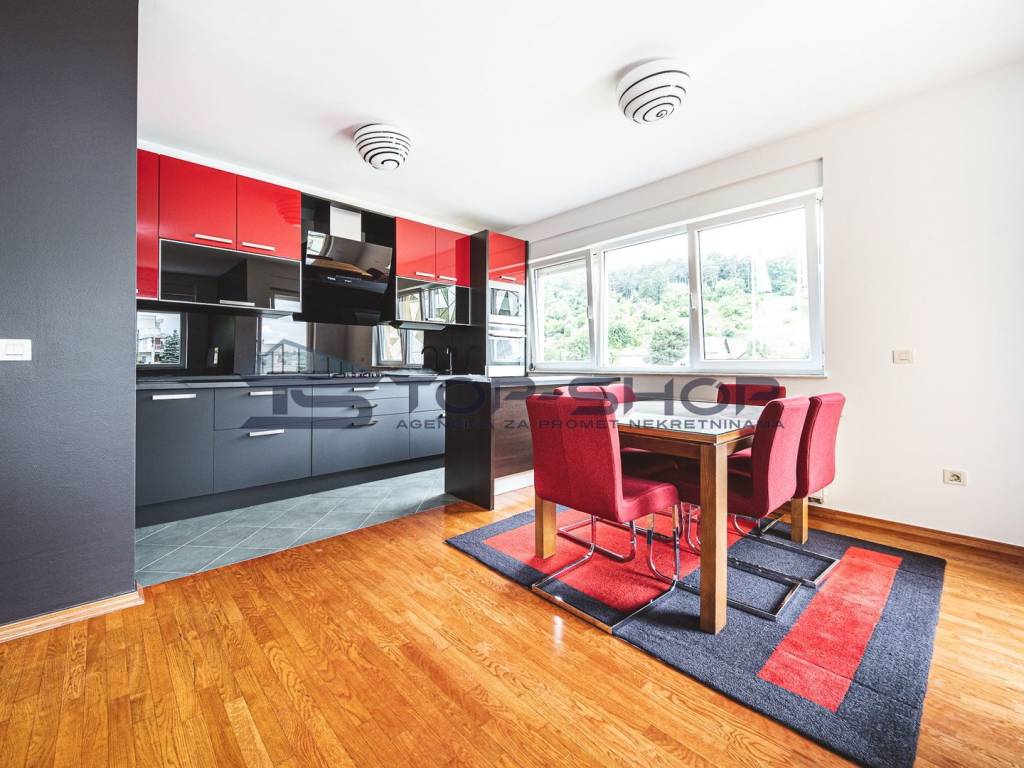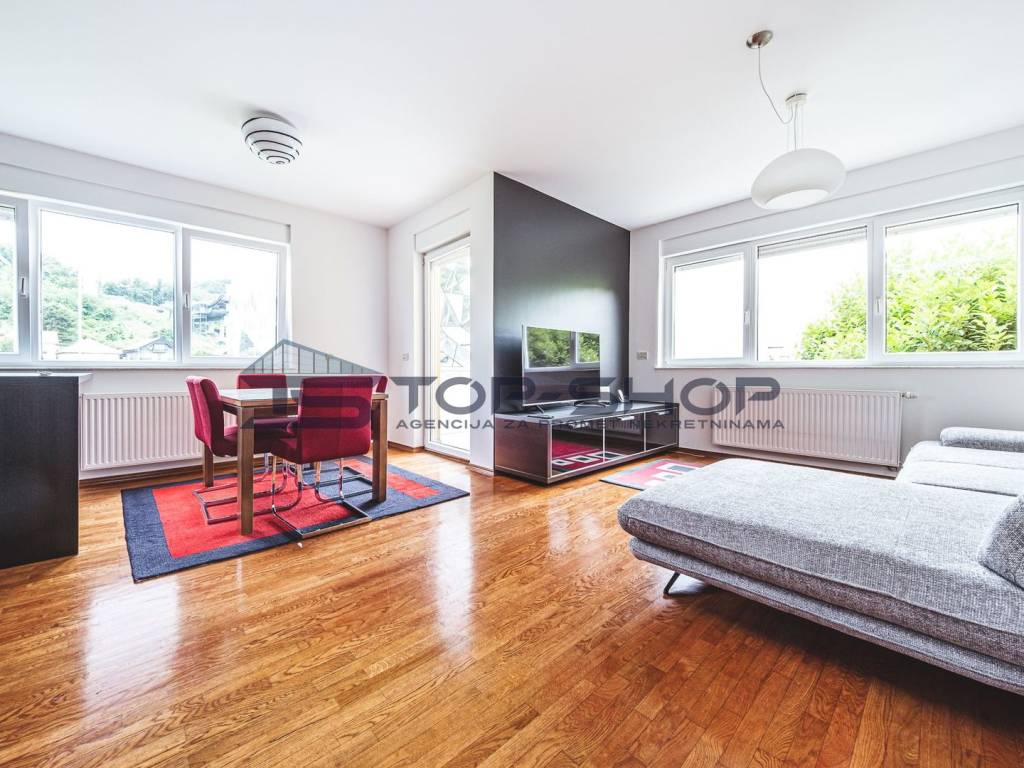 It is located in an exceptional location in a quiet street full of greenery just a few minutes from the strict city center, excellent functional layout, bright due to its orientation towards the east, south and west and large glass walls with lots of daylight, security doors, PVC joinery, air conditioning, video intercom...