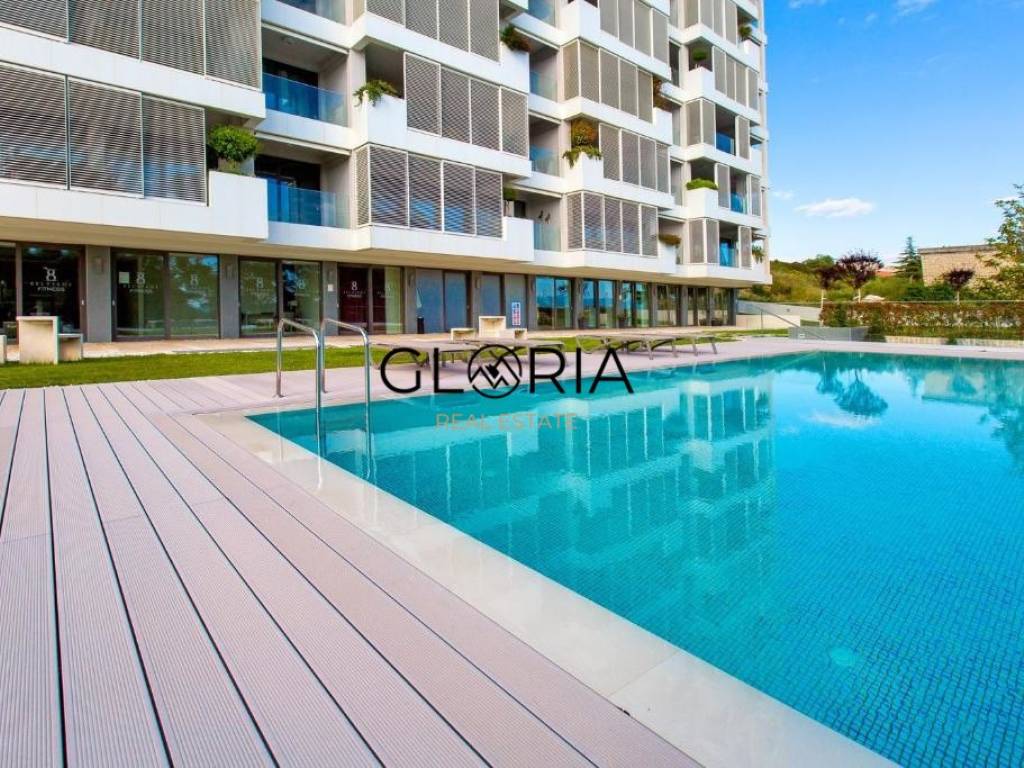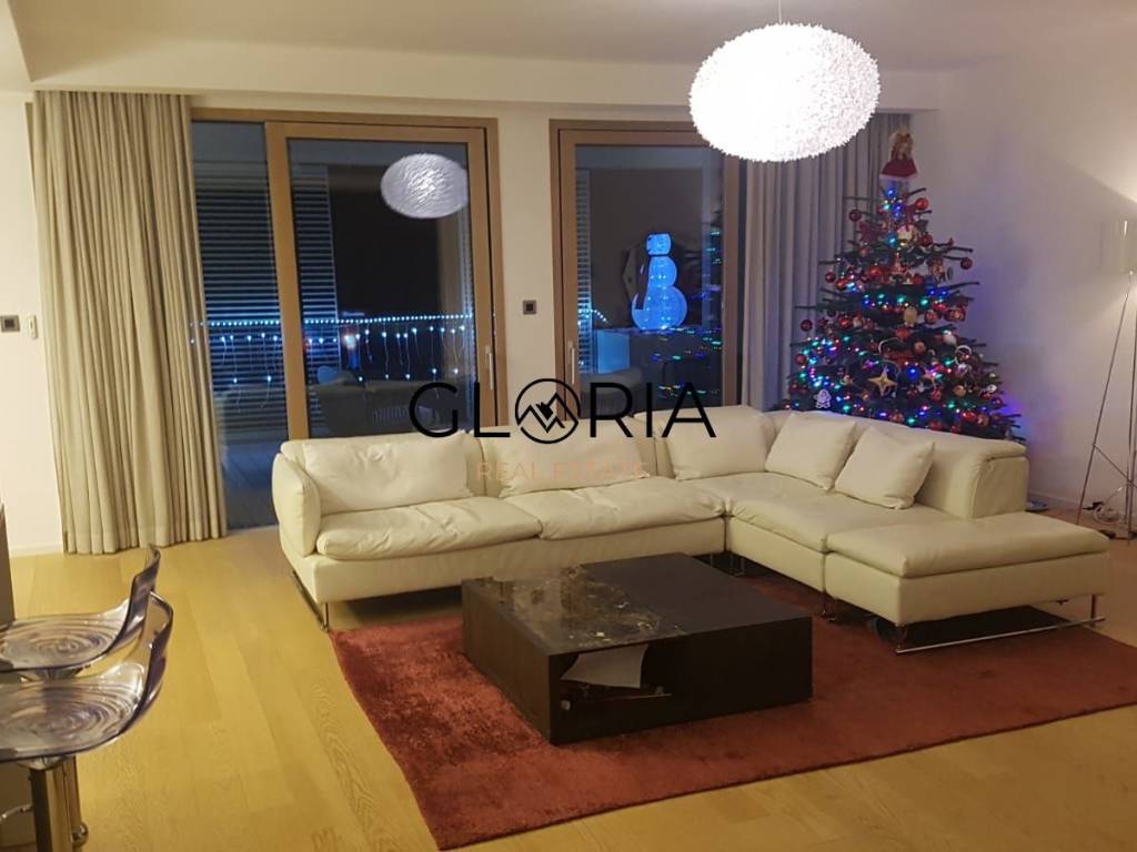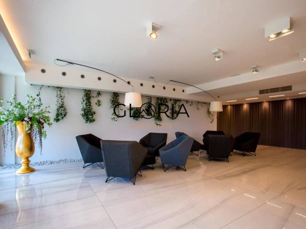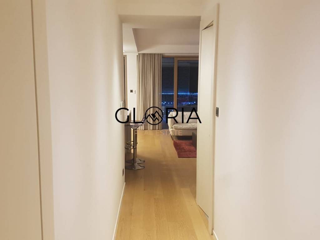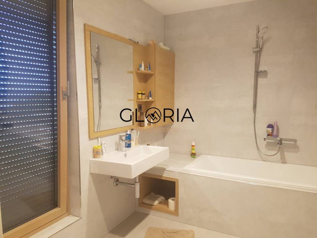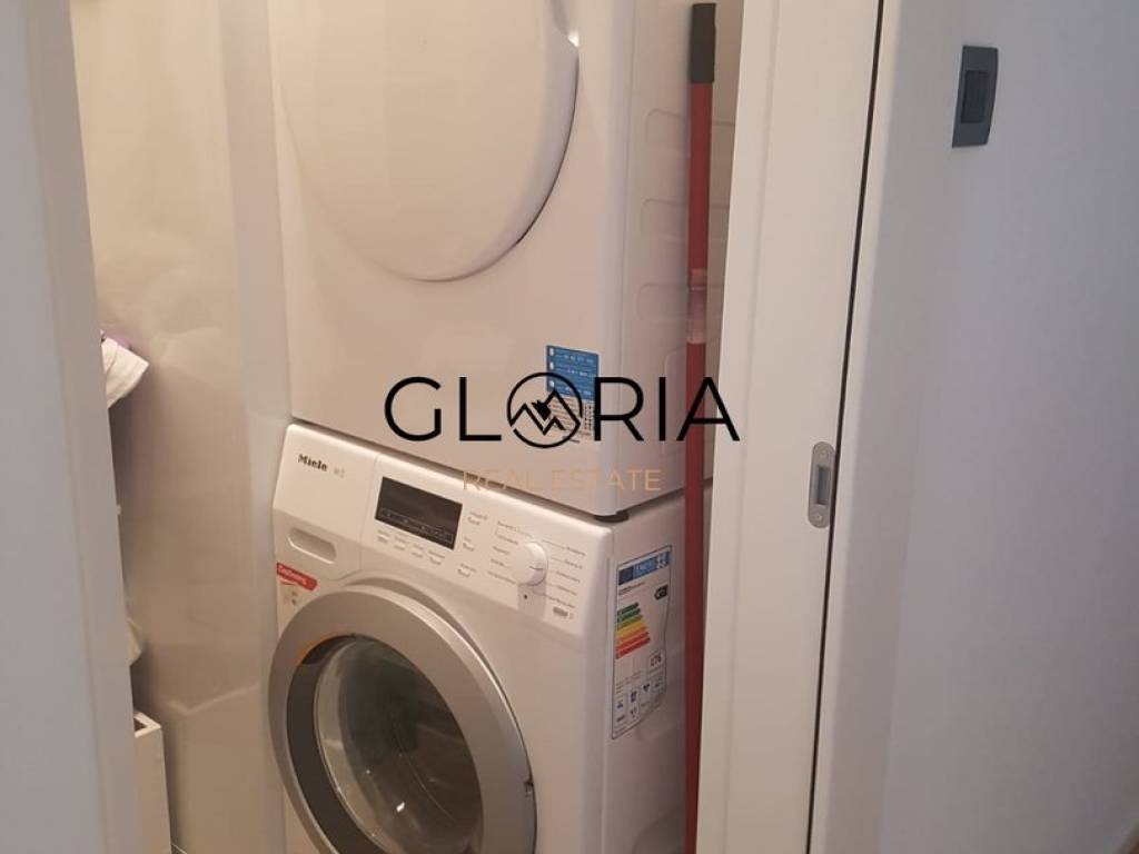 Stan je u potpunosti opremljen i namješten pomno odabranim, dizajnerskim komadima namještaja te obiluje prirodnim svjetlom zahvaljujući velikim staklenim površinama. Prostran, svijetao i osunčan – idealan je dom za one koji traže luksuz, mir i sigurnost.