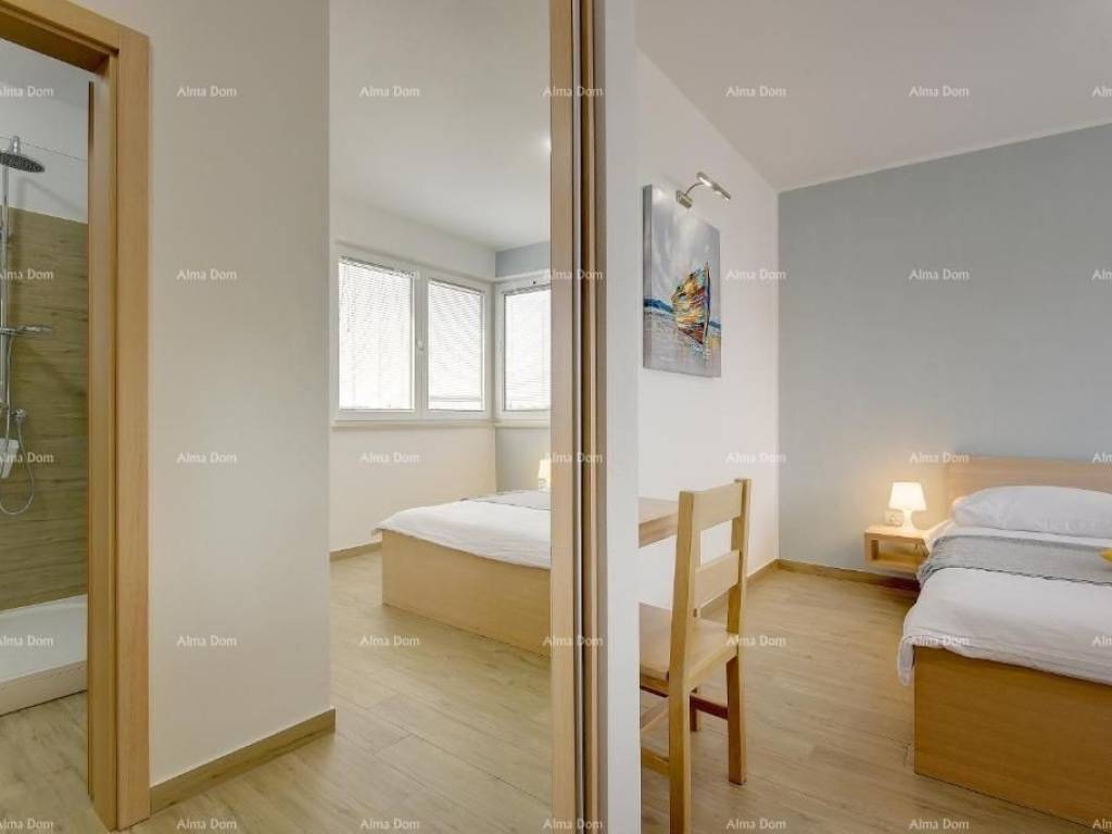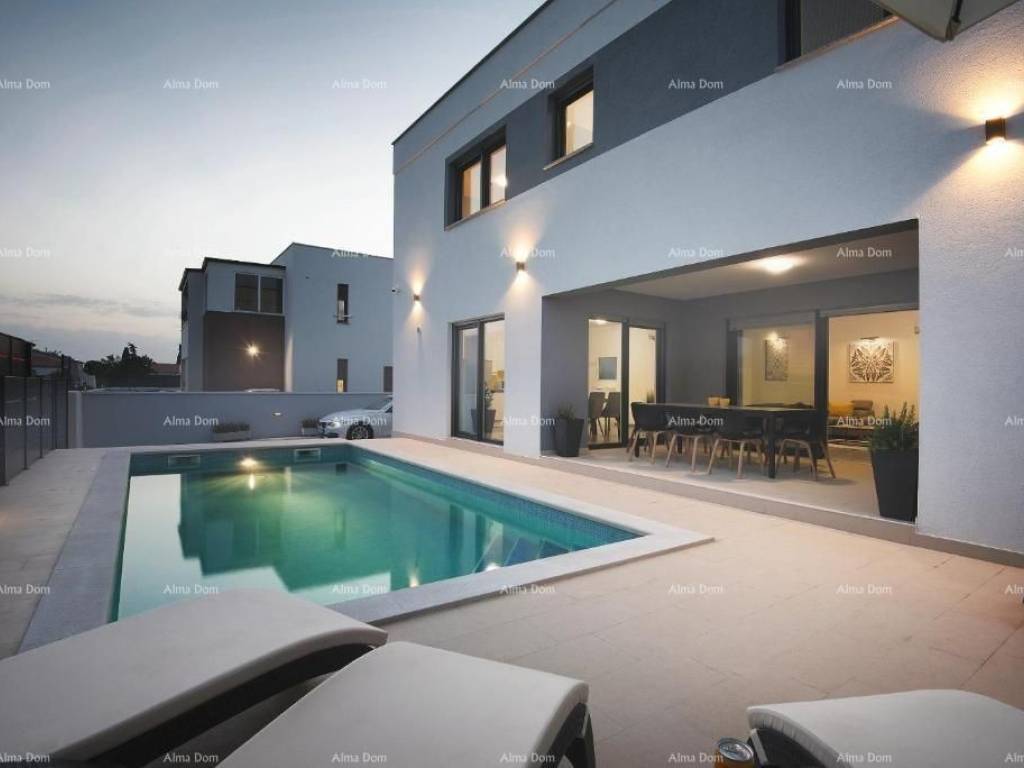 The offer is a detached house!It consists of ground and first floor. On the ground floor there is an entrance hall, a bathroom, a spacious living room and a kitchen with a dining room. The living room leads to a spacious terrace where there is a large table and a summer kitchen, and a garden where there is a sunbathing area and a 4 x 8 meter swimming pool. On the first floor of the house there are 3 bedrooms with bathrooms.Furnished. Air-conditioned. Parking.Cultivated garden with irrigation.Video surveillance.INFO:azra@almadominvest.com+385 916115706jelena@alma-nekretnine.com+385 98 323 264