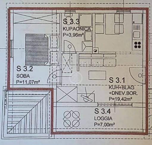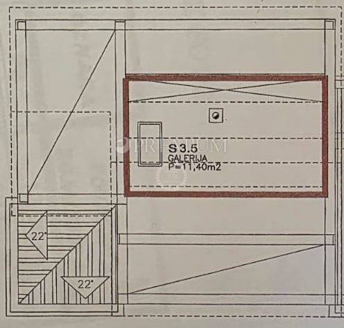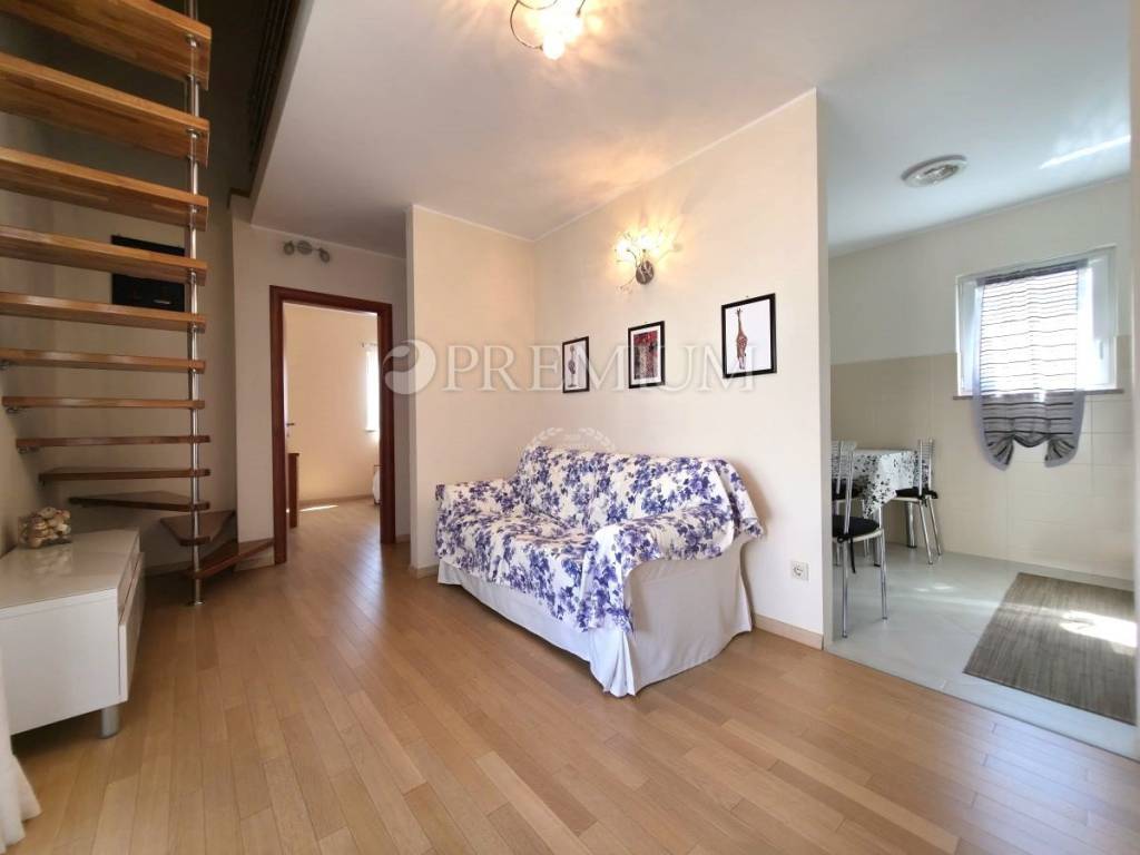 This two-bedroom apartment, with a total area of 51 m², is located on the first floor of a residential building with a total of four residential units. It consists of an entrance area, kitchen with dining area, living room with access to a covered terrace, bedroom, bathroom, and an 11.40 m² gallery, which can be used as an additional bedroom. The apartment includes one parking space, is furnished, and the furniture is included in the price.