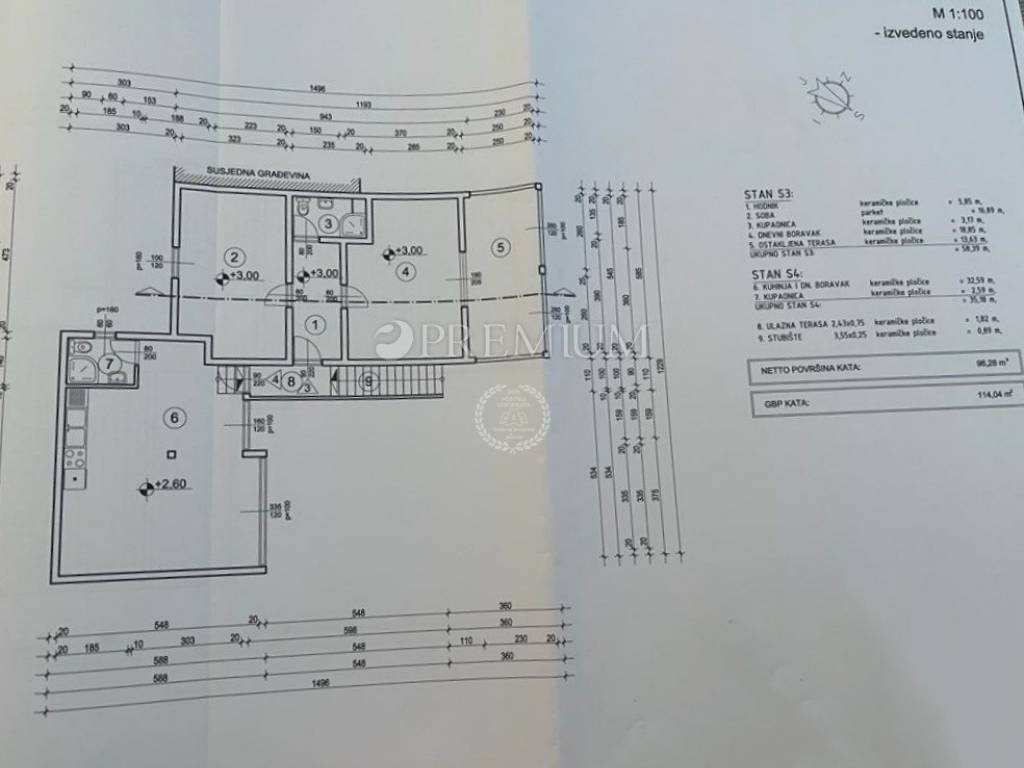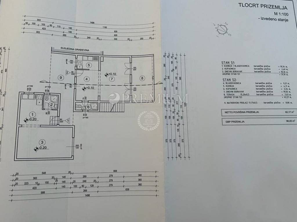 On the first floor, which is connected to the ground floor by an external staircase, there is a studio apartment with a bathroom, and an apartment consisting of a hallway, bathroom, bedroom, living room, with an exit to the glazed terrace, which offers a beautiful view of the sea and Kvarner Bay.