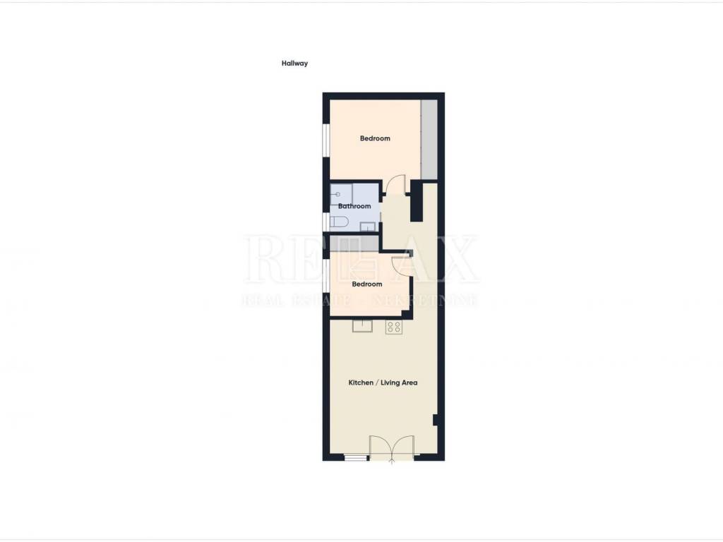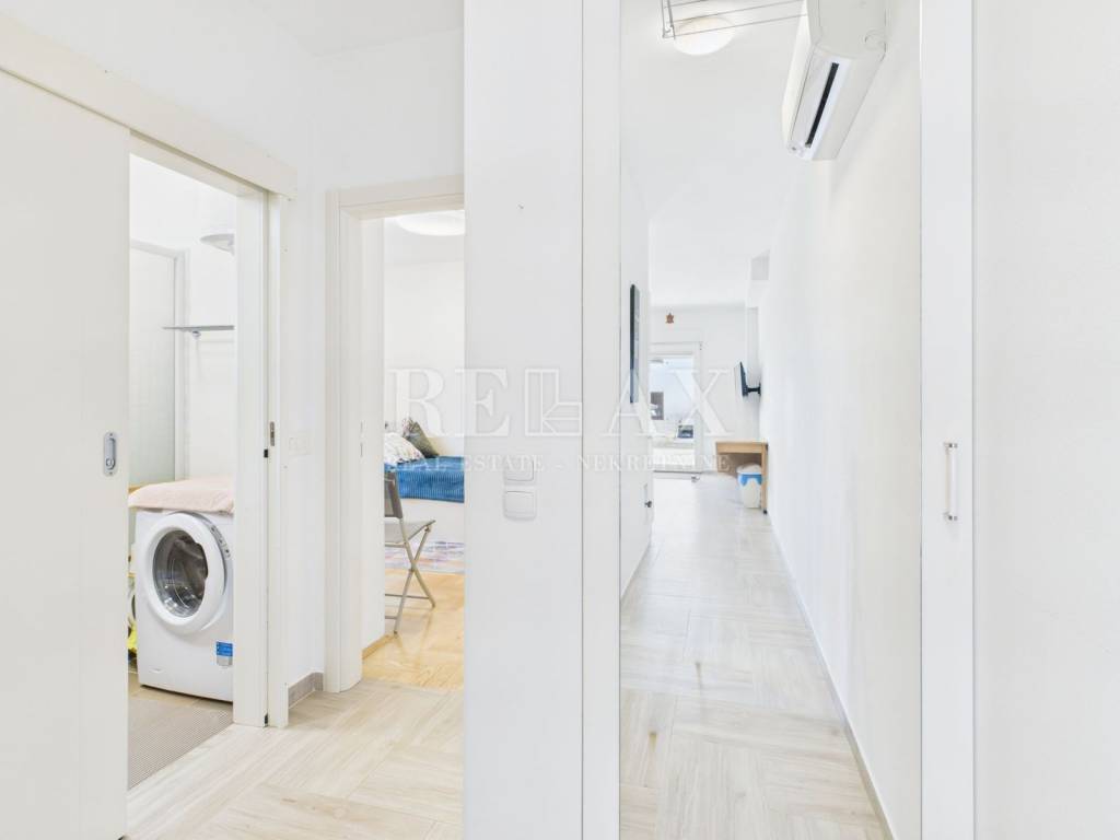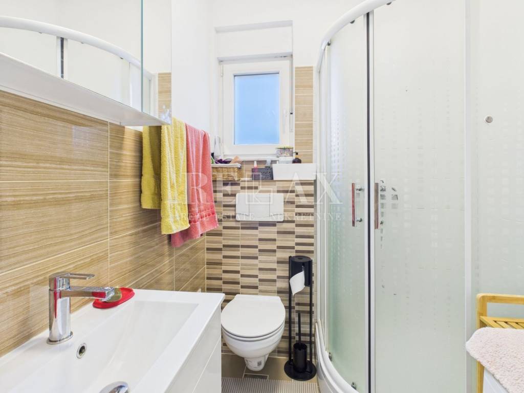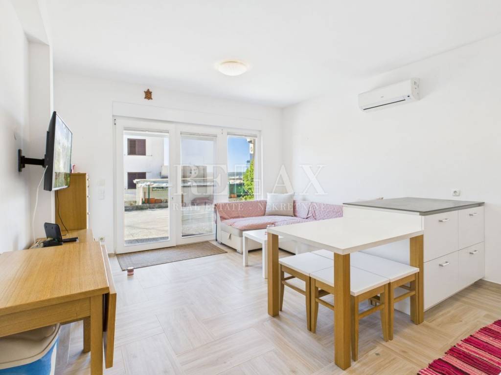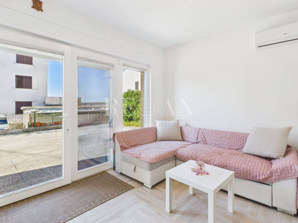In an excellent location in Jadranovo, just 300 meters from the sea and beach and 500 meters from the town center, this pleasant two-bedroom apartment is situated on the ground floor of a building. The total area of the property is 47.03 m².