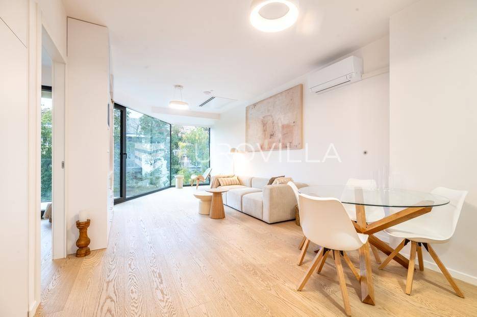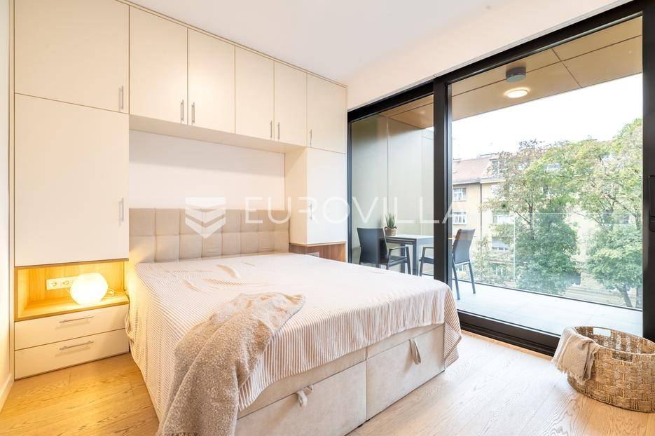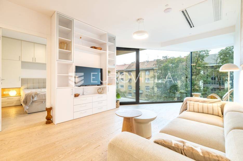 Britanski trg luksuzna novogradnja (2021 god). Prekrasan dvosoban stan zatvorene površine 52 m2 s prekrasnom loggiom 8 m2. Pripada mu garaža površine 20,4 m2 (12,24) s izdvojenim spremištem. Ukupno obračunski NKP 70 m2.Sastoji se od ulaznog halla, dnevnog boravka otvorenog tlocrta s kuhinjom i blagovaonicom te natkrivenom loggiom, spavaće sobe s izlazom na loggiu te kupaonice.Dizalica topline, podno grijanje i kanalno hlađenje, alu stolarija s troslojnim staklom, parketi I klase, vrhunska keramika i sanitarije. Kompletno namješten i opremljen.Nalazi se na jednoj od najatraktivnijih i najskupljih rezidencijalnih lokacija u Zagrebu, 2 min lagane šetnje do Ilice i tramvaja, 10 min do Trga Bana Jelačića. U blizini svih bitnijih sadržaja, trgovina, javnog prijevoza, škola, vrtića. Izuzetno mirna mikrolokacija.Za sve ostale upite nas povratno kontaktirajte.