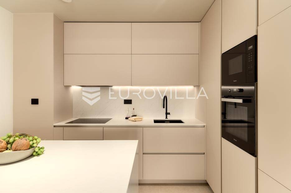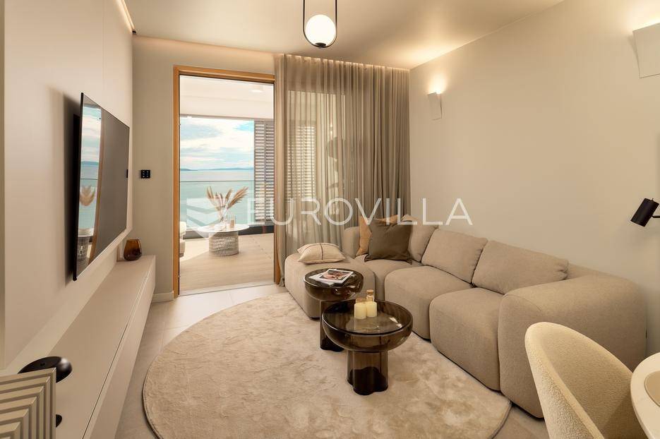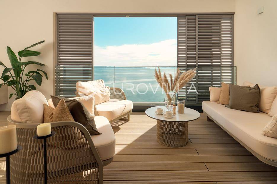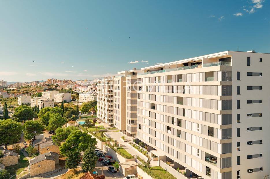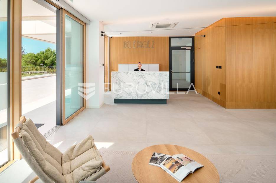 Split, Duilovo, luksuzno uređen i potpuno opremljen dvosoban stan s pogledom na more u novoizgrađenom objektu 'Bel Etage 2'.Položen je na šestom katu, a sastoji se od ulaznog hodnika, dvije spavaće sobe, od kojih je jedna master s vlastitom kupaonicom, druga soba je opremljena s dva jednostruka kreveta i radnim stolom, gostinjske kupaonice, open space dnevnog dijela podjeljenog na kuhinju s otokom, blagovaonicu i dnevni boravak, s izlazom na loggiu površine 18m2. Pripadaju mu dva parkirna mjesta u garaži objekta, koji su liftom povezani sa stanom.Opremljen je Miele aparatima najnovije generacije ( svi kuhinjski aparati, perilica i sušilica rublja ), vodenim podnim grijanjem u cijelom stanu, Daikin klimatizacijski uređajima ( svaka prostorija u stanu je klimatizirana ), kompletno dizajniran od strane renomiranog arhitektonskog studija, upotpunjen svim potrebnim stvarima za svakodnevni život ( posteljina, ručnici, posuđe, beštek, razne dekoracije ).Ulaz u zgradu je omogućen Keyless sistemom s pomoću digitalnog otiska prsta. Recepcija je na usluzi 24/7, a svi stanari uživaju ekskluzivan pristup potpuno opremljenoj teretani, sauni i dvorani za jogu ili pilates unutar kompleksa.Lokacija na Duilovu nudi savršenu ravnotežu mira i blizine urbanih sadržaja. Uživajte u pješačkoj udaljenosti do plaža, restorana i trgovina, s izvrsnom povezanošću s centrom Splita.Za sve ostale informacije, stojimo Vam uvijek na raspolaganju.